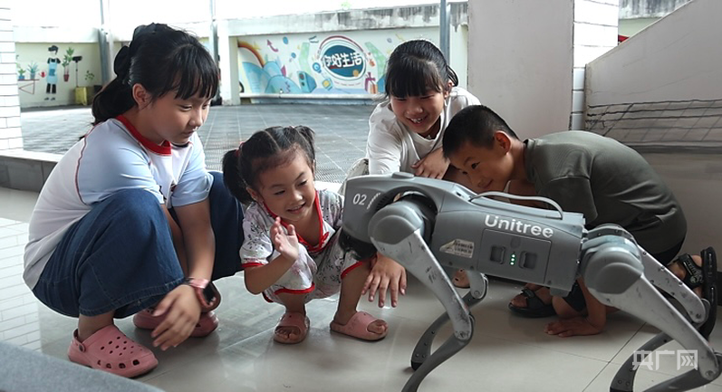 孩子们与机器狗互动(央广网发 张潇悦 摄)