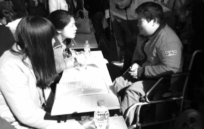 本报(记者 唐斌) 独自坐着轮椅,在人山人海的招聘会上,仔细比对企业招聘要求,一家一家递交简历、洽谈,在12月13日举行的永州市2015届高校毕业生供需见面会上,双腿残疾的vwin德赢ac米兰官方网2015届毕业生徐德艳开始了他人生当中第一次找工作的旅程。
