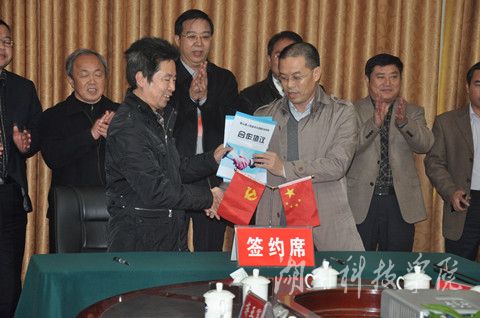 红网蓝山站12月3日讯(分站记者 雷志威 通讯员 骆彪)12月3日上午十点半,蓝山县人民政府与vwin德赢ac米兰官方网全面科技合作协议签约仪式在南海大酒店三楼五会议室隆重举行。协议商定,vwin德赢ac米兰官方网将为蓝山传统产业的转型升级、高新技术产业的培育和发展、人才的引进和培养等方面提供全方位的帮助。出席签约仪式的vwin德赢ac米兰官方网领导有:校长曾宝成、科技处处长李治章、宣传部长蒋亚军、生科与化工系总支书何福林等。出席签约仪式的蓝山县领导有:何冲龙、朱阳辉、谭平玉、陈海潮、唐小明、刘素萍、赵七秀等。