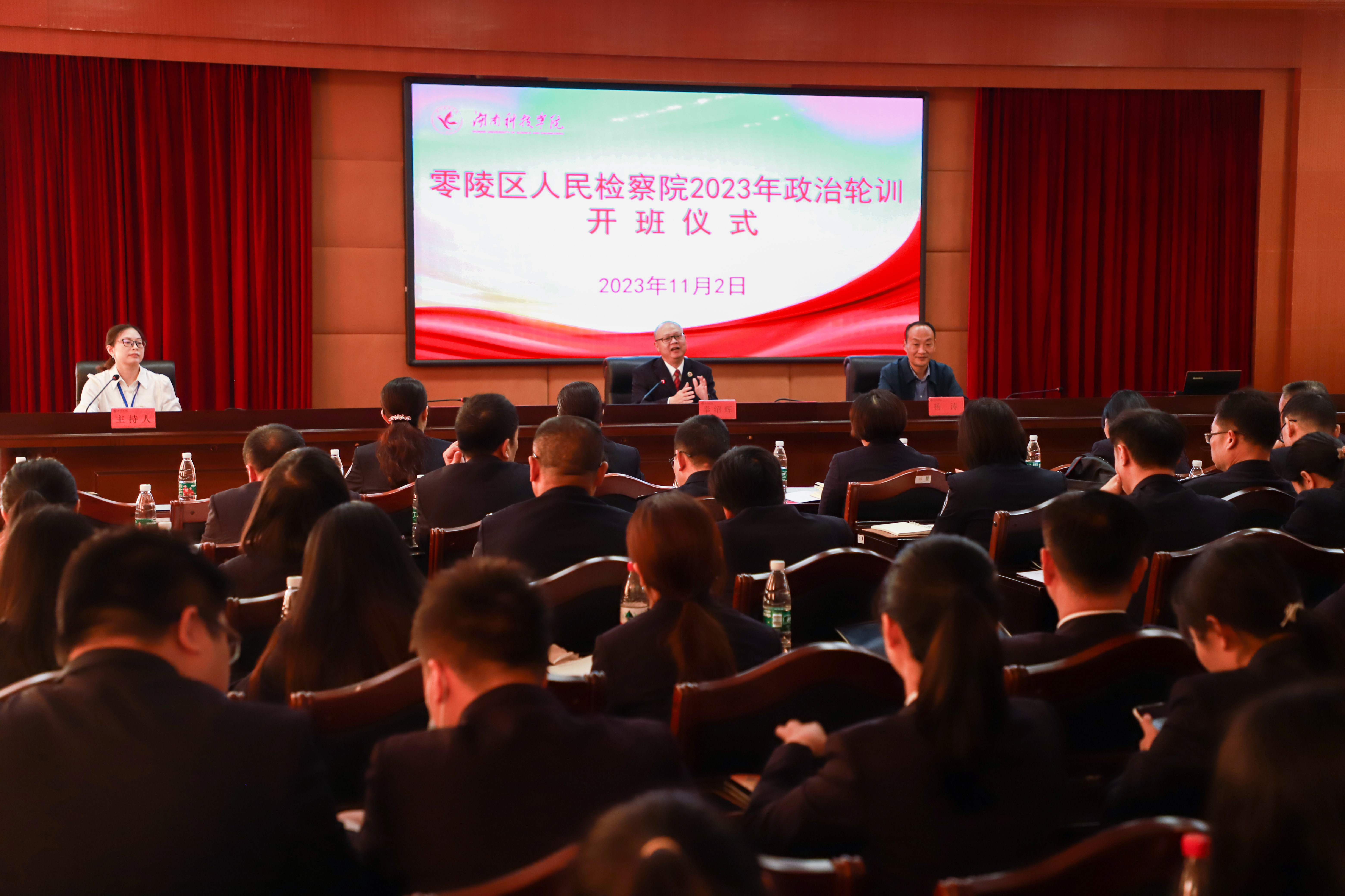 本网讯(通讯员 雷琼)11月2日,零陵区人民检察院2023年政治轮训培训班在vwin德赢开班。校党委委员、组织部长、党校常务副校长杨涛出席开班仪式,零陵区人民检察院党组书记、检察长奉绍辉作开班动员讲话,开班仪式由组织部副部长陈玉皎主持。