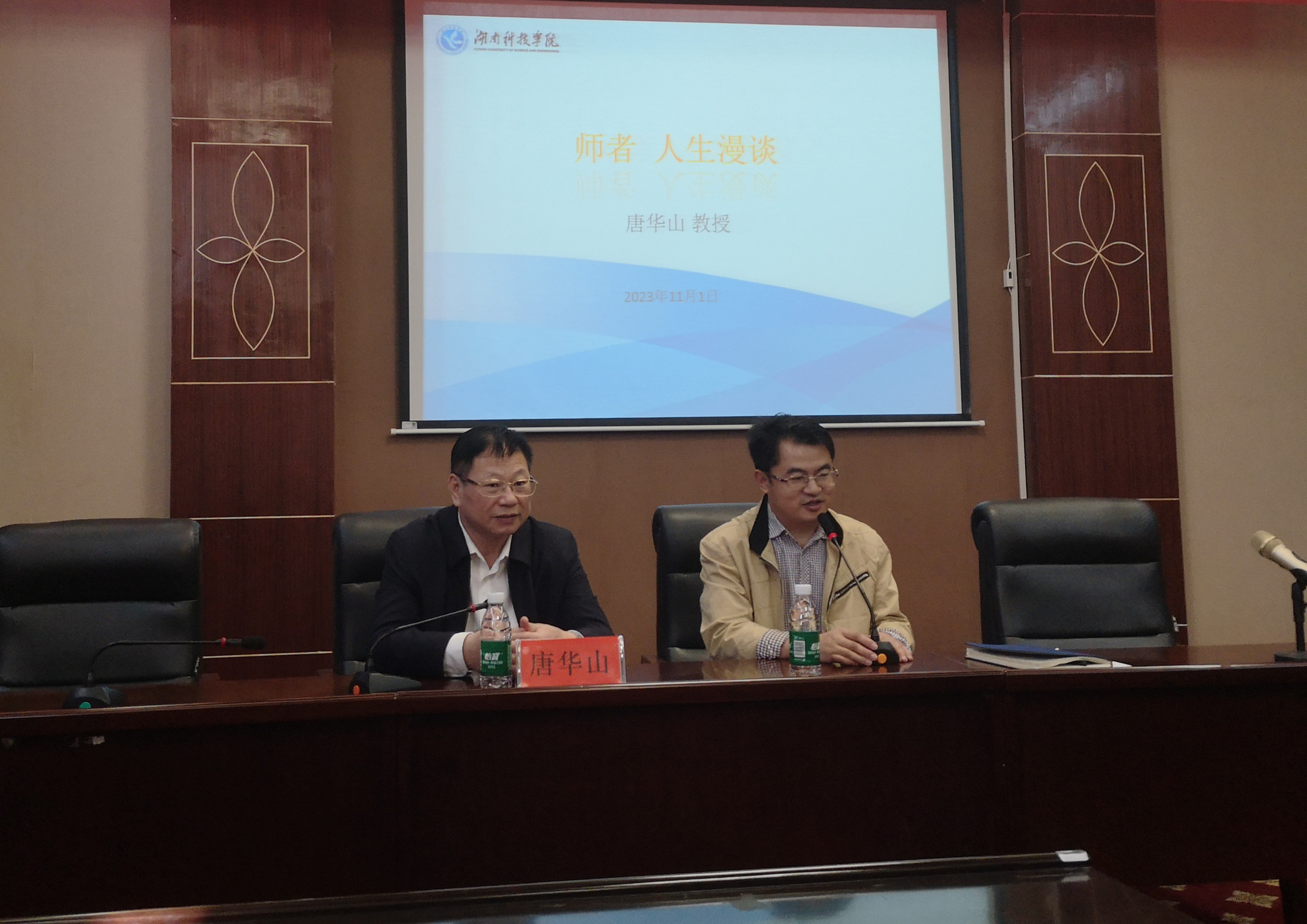 唐华山结合自己的经历,从求学、工作两方面分享了管理、教学经验。他表示作为一名教师应该全面发展,不断提升自身能力;应行为世范,作好表率,作学生的镜子;要厚植家国情怀,践行立德树人的使命担当。他与青年教师进行现场互动交流,为大家解疑答惑。