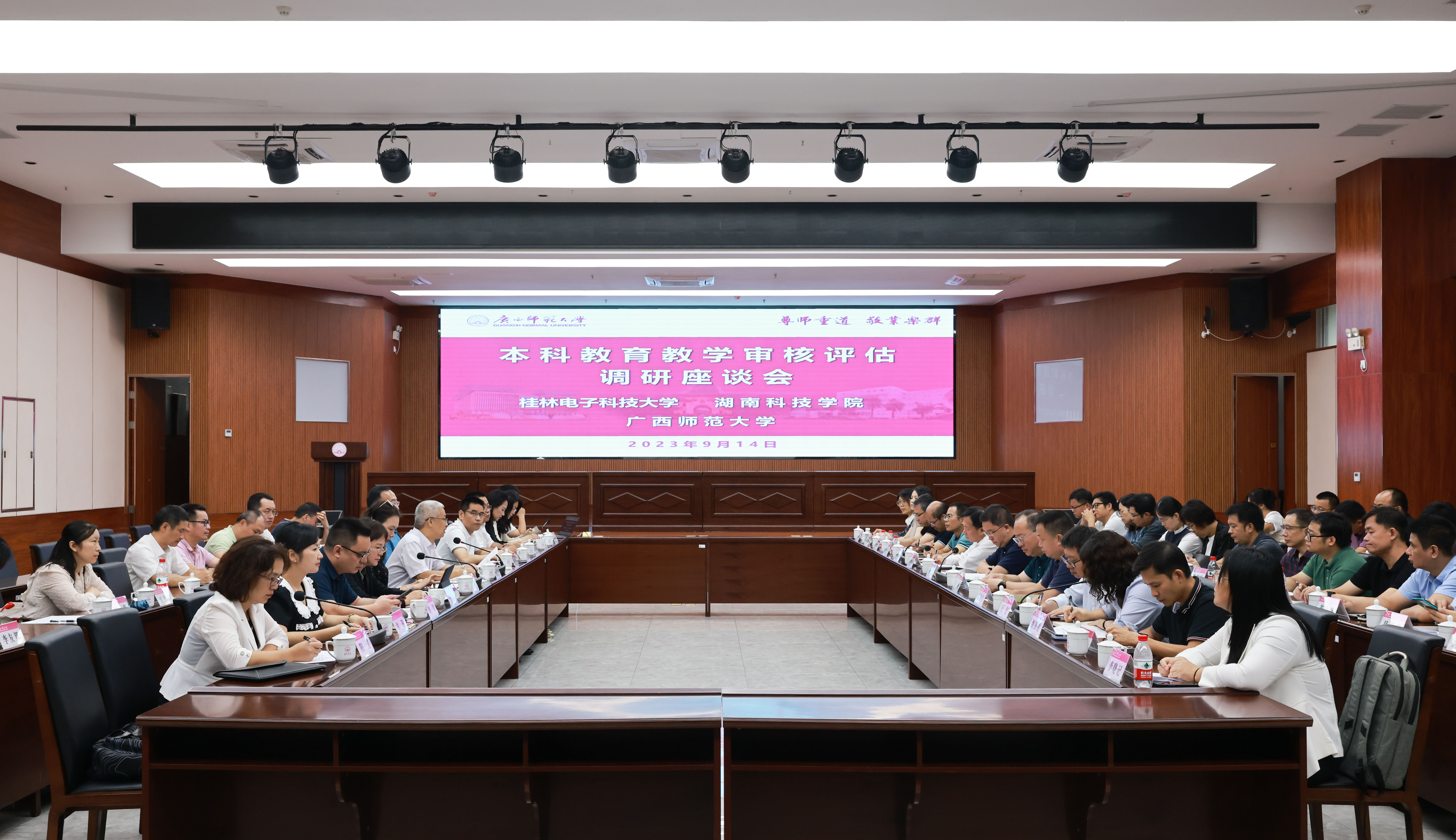 本网讯 9月14日,教学质量管理处处长唐耀平带队赴广西师范大学学习考察,广西师范大学副校长汤志华、校教务处评估与建设办公室、学工部等职能部门负责人及部分教学学院负责人参加了座谈交流。