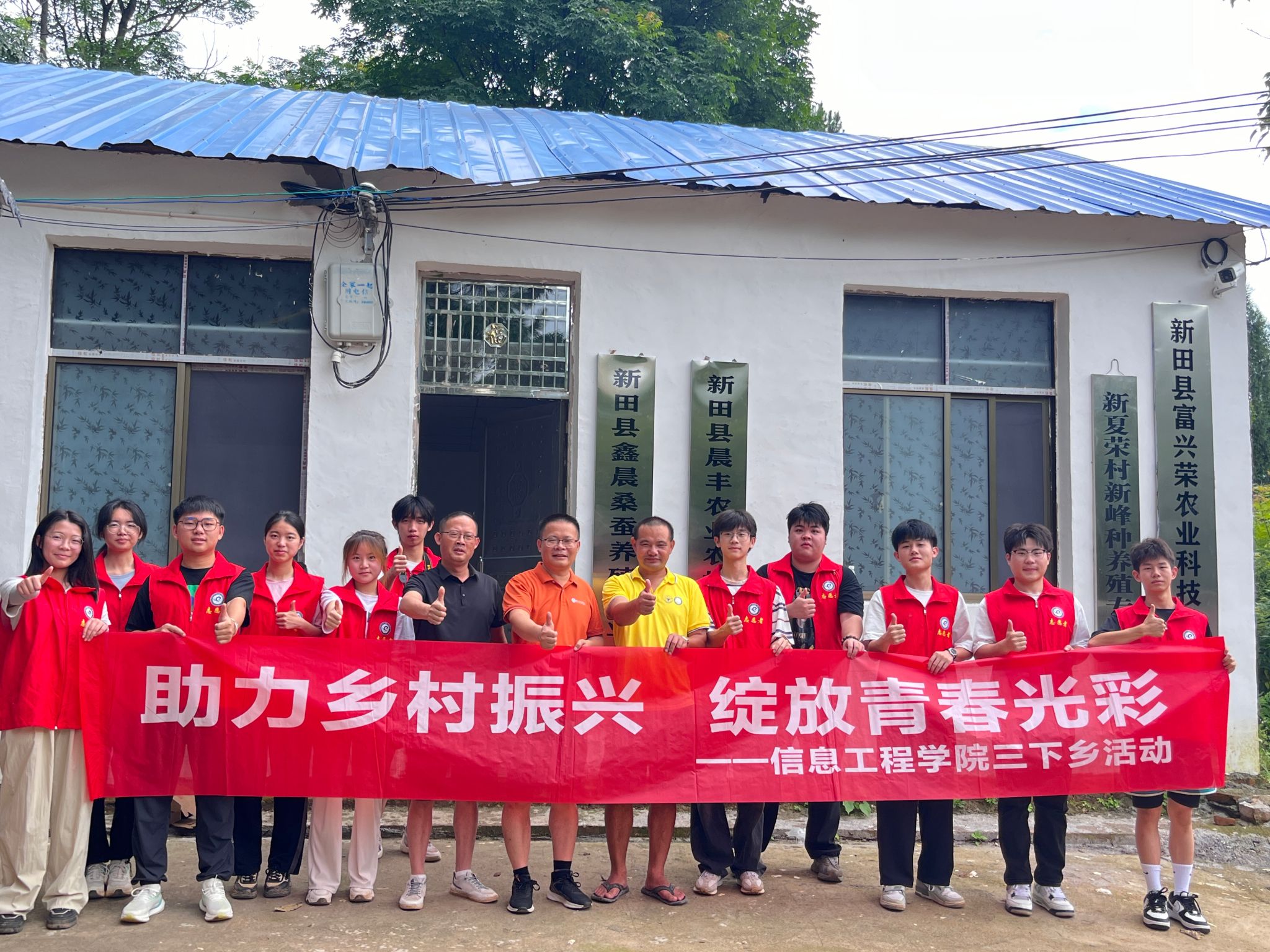 本网讯(通讯员 于亚萍 陈星明)近日,信息工程学院组织师生前往新田县枧头镇,开展以“助力乡村振兴,绽放青春光彩”为主题的暑期“三下乡”社会实践活动,用脚步丈量青春,用汗水浇灌梦想。