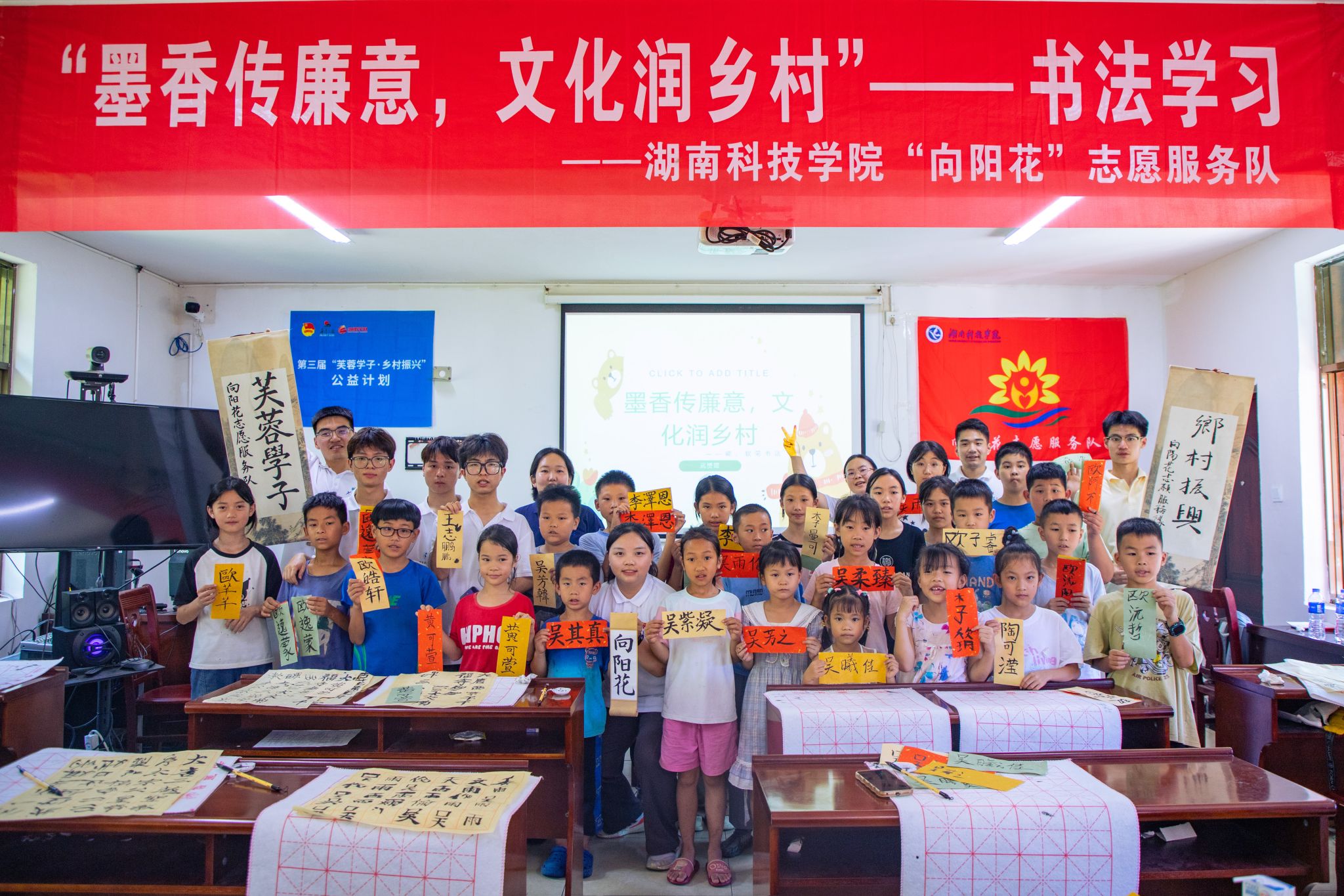 本网讯(通讯员 陶鑫怡 蒋琨琨)近日,在怀化通道侗族自治县黄土乡皇都侗文化村,美术与艺术设计学院“向阳花”志愿服务队为当地侗乡青少年带来了书法、漆扇等一系列丰富多彩的文化传承活动。