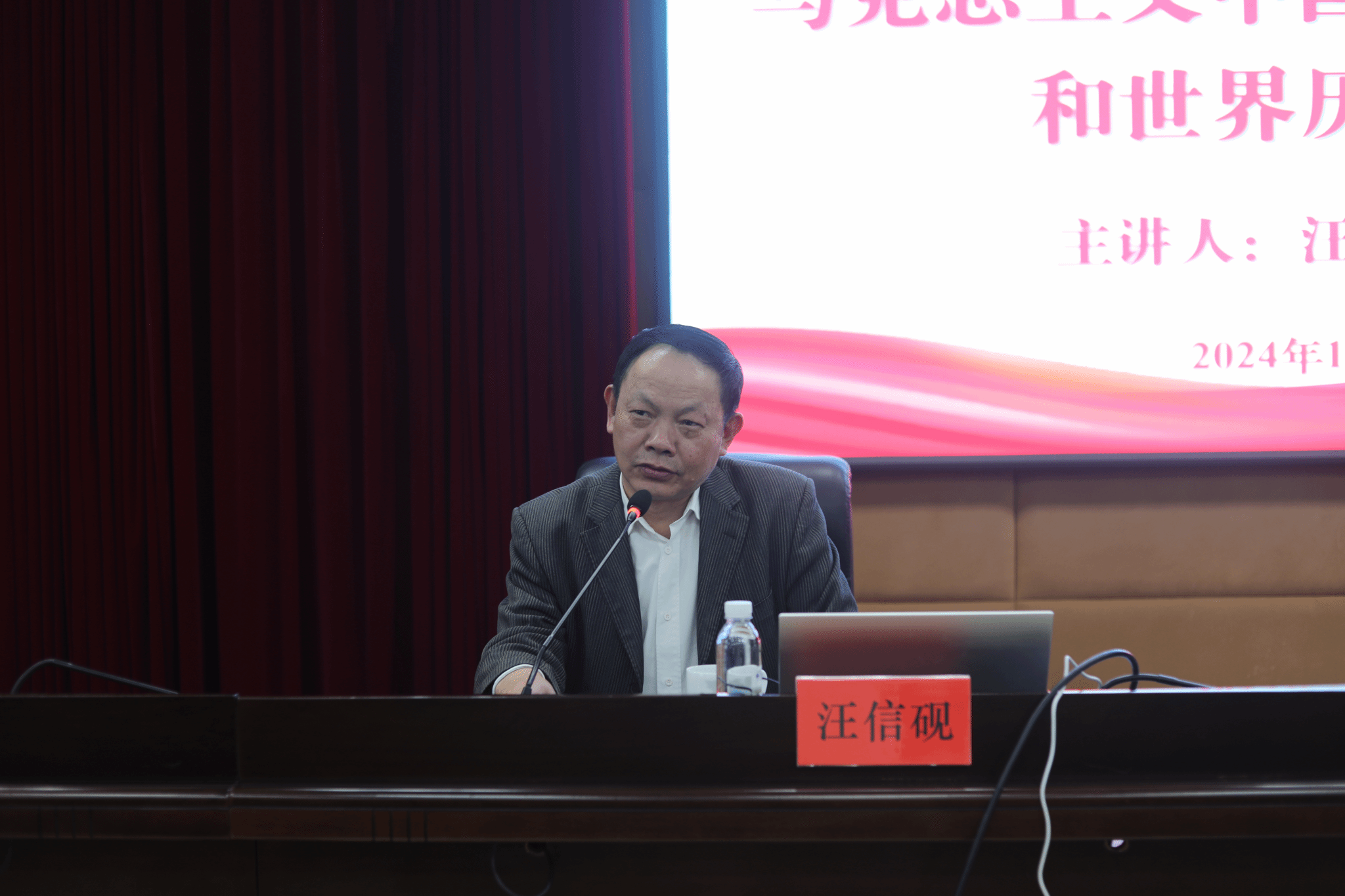 本网讯(通讯员 陈小燕)11月22日,武汉大学人文社会科学资深教授、哲学院教授、博士生导师汪信砚应邀来校,在行政楼801会议室为vwin德赢师生作了题为《马克思主义中国化的丰富内涵和世界历史意义》的学术讲座,讲座由党委委员、副校长何海教授主持。