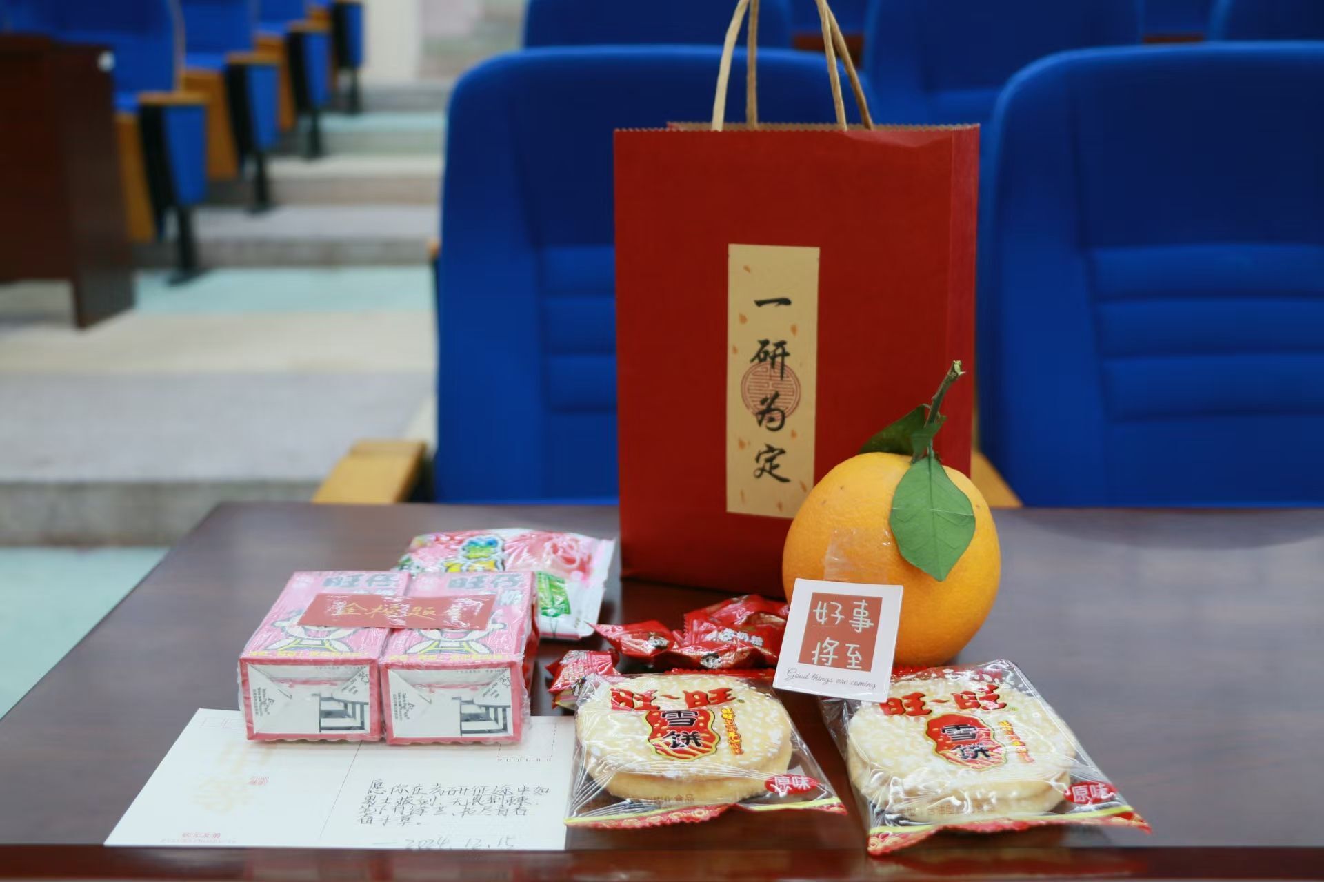 活动中,土木与环境工程学院院长周基鼓励考研学子,不断增长知识面,提高综合素质和专业能力。党总支书记何永红为考研学子送上了真挚的祝福,希望考研学子坚定信心,调整心态,一战成“硕”。活动最后,全体院领导为考研学子送上精心准备的“一研为定”旺旺大礼包,礼袋里装有旺仔牛奶、心想事“橙”、祝福卡片等,希望同学们考研运气“旺旺旺”!