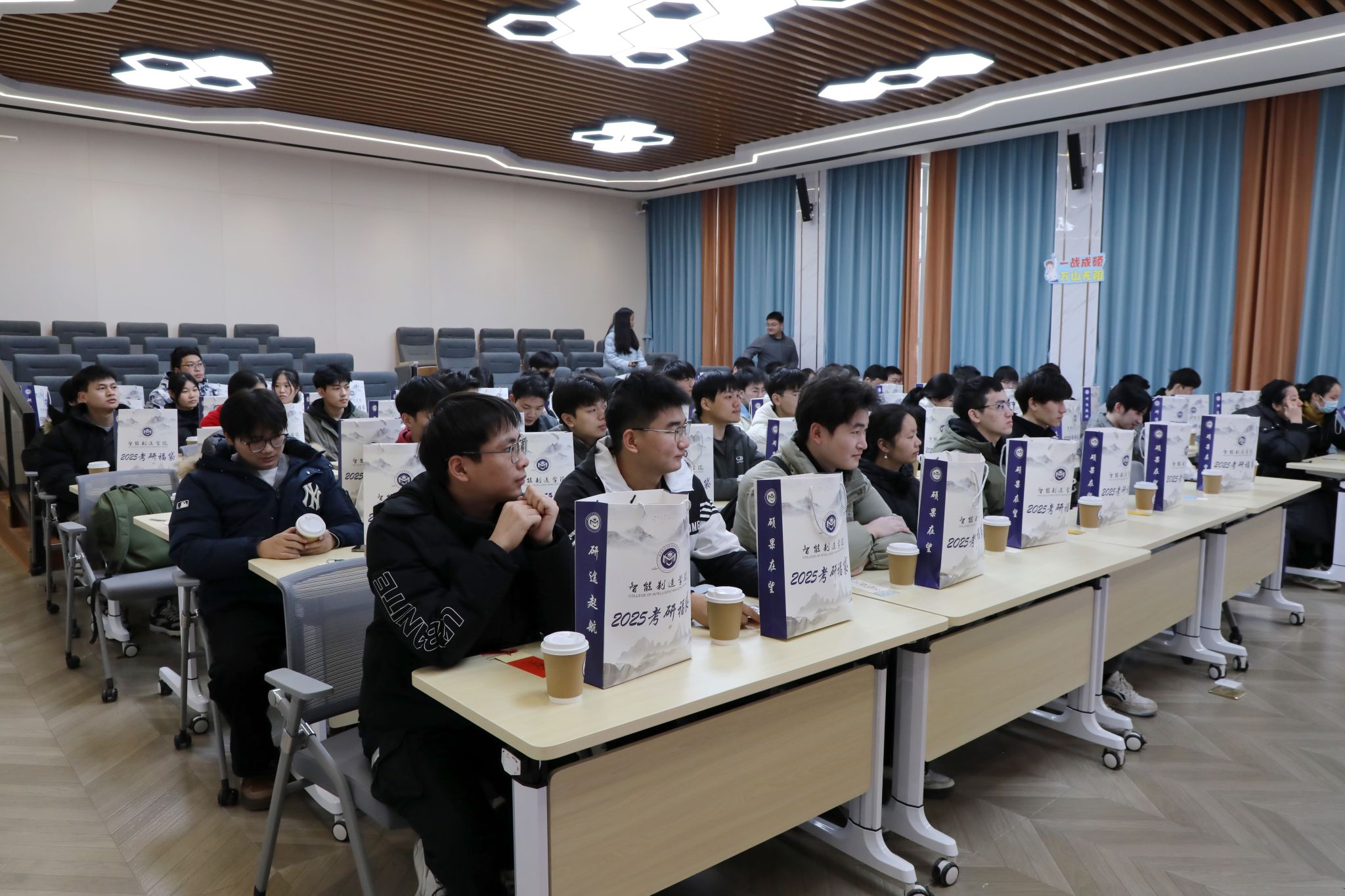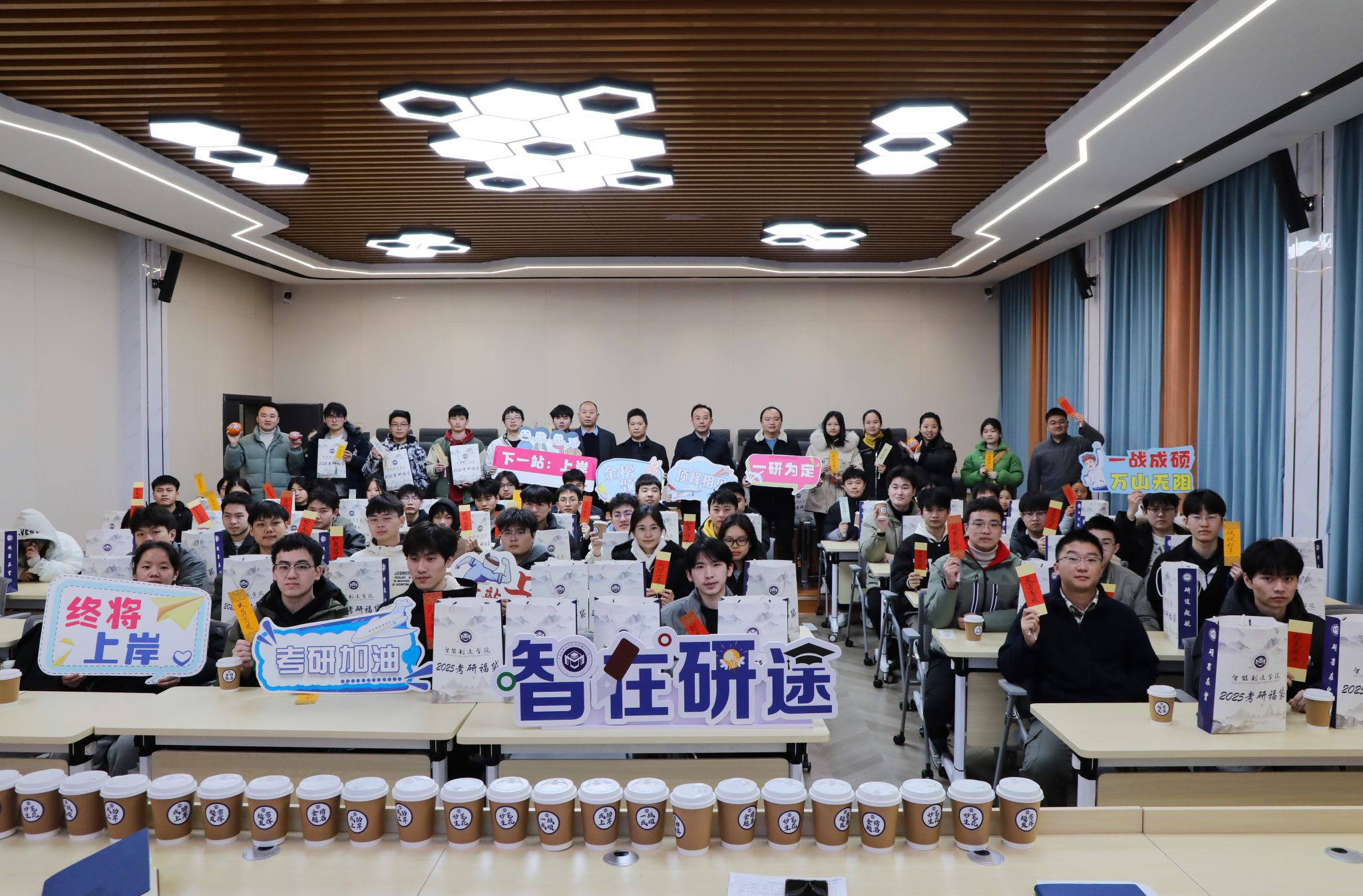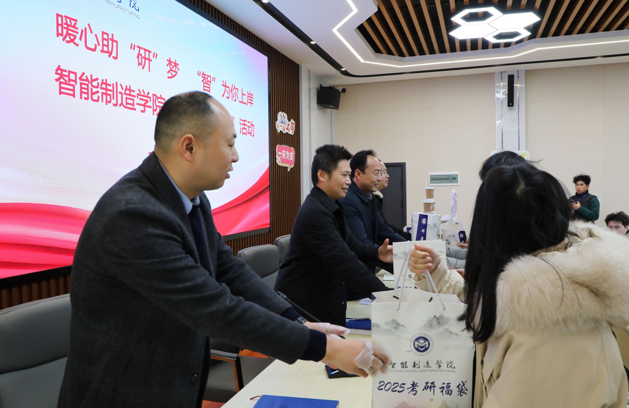 接过礼物的考研学子,脸上洋溢着感动与坚定,“在这最后的冲刺阶段,非常感谢学院领导老师和学弟学妹们送上的关心和温暖,我们一定会全力以赴,不负韶华,不负期许。”
