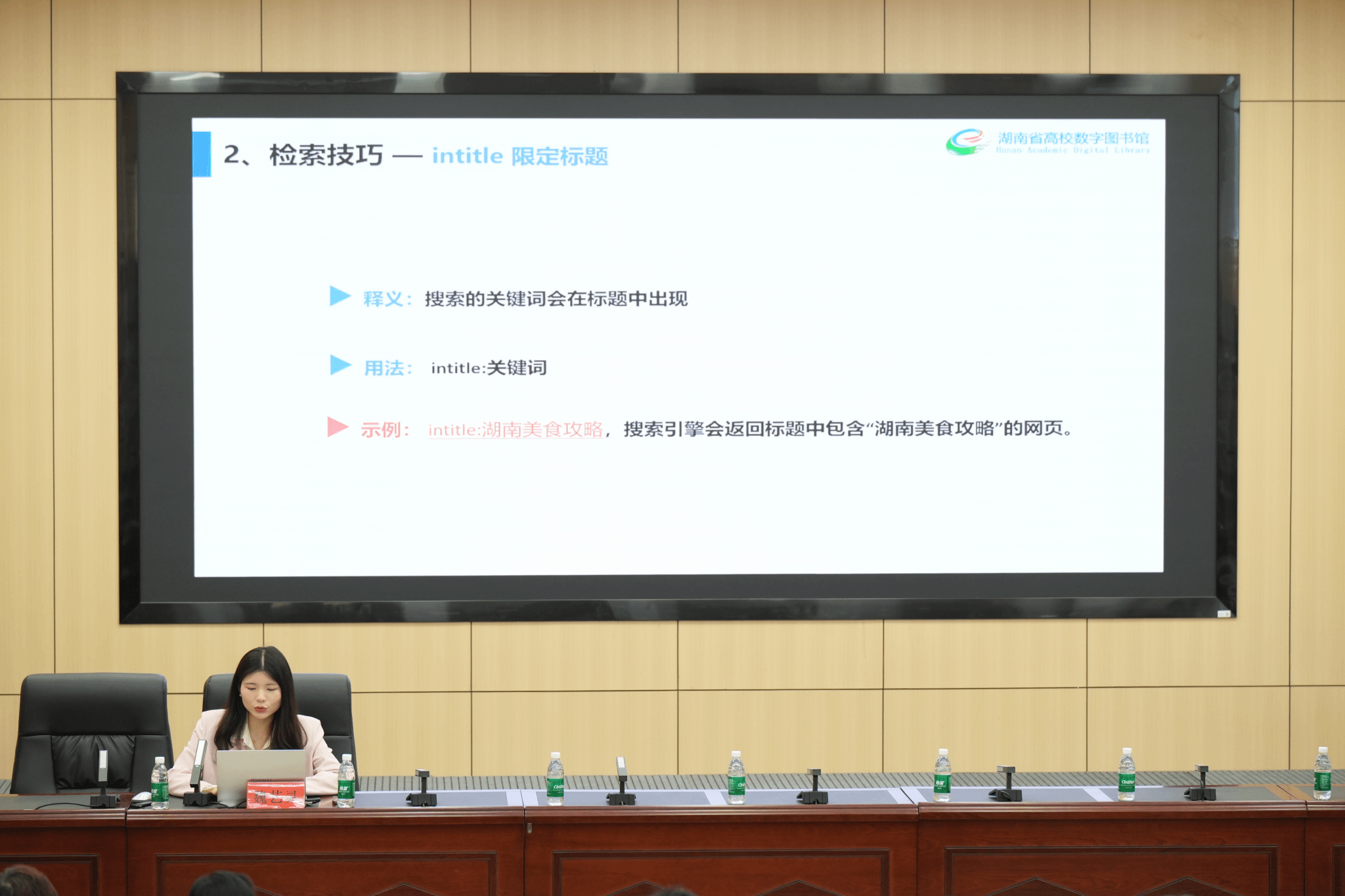 特邀专家魏艺灵以“信息检索策略及实例分析”为主题进行了精彩演示和现场讲解,她结合自身丰富的实践工作经验,深入浅出地讲解了如何更好利用湖南省高校数字图书馆相关资源。