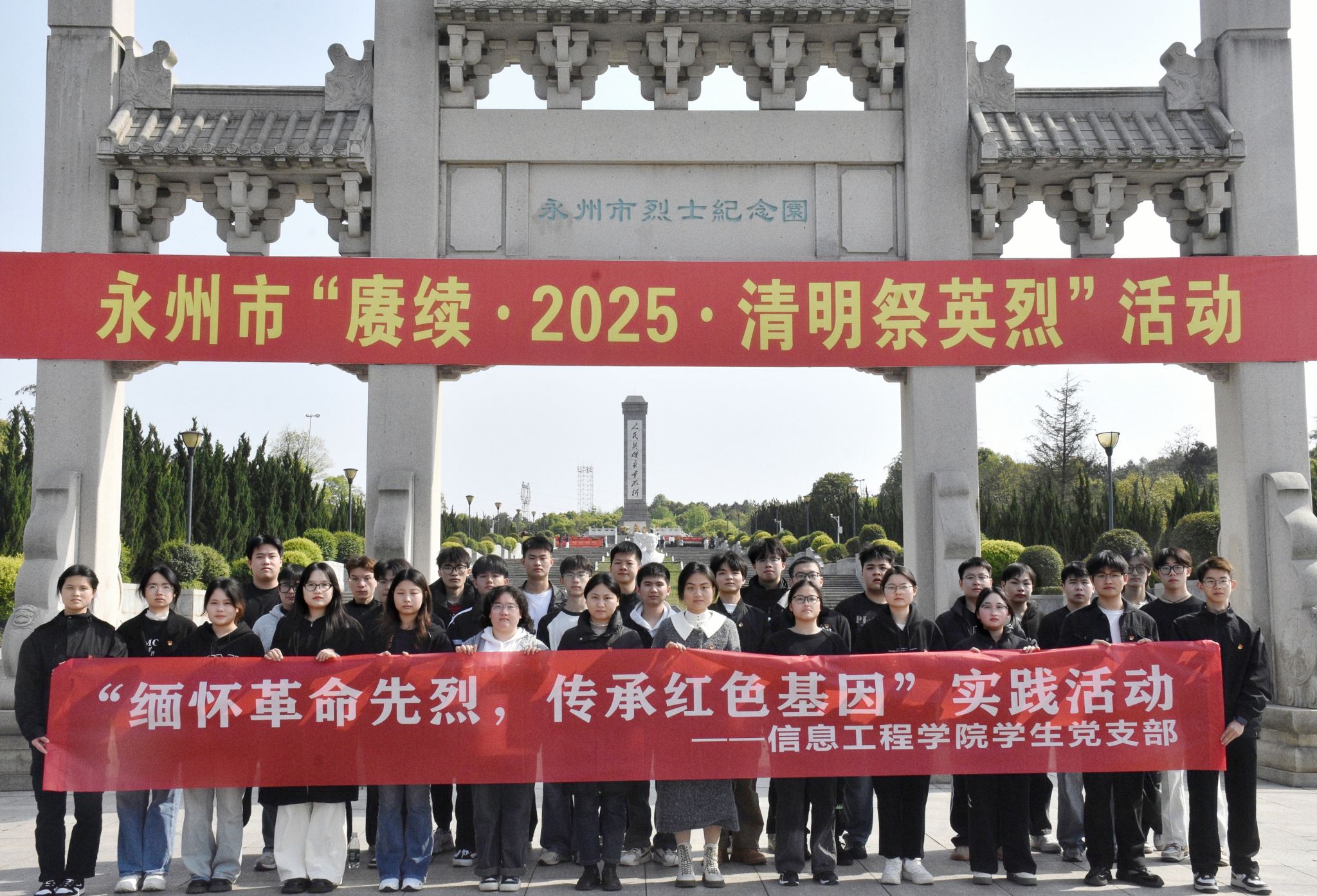 本网讯(通讯员 于亚萍 唐巧娟)为深切缅怀革命先烈,传承红色基因、汲取奋进力量,4月1日,信息工程学院学生党支部在永州市烈士纪念园开展“缅怀革命先烈,传承红色基因”实践活动。信息工程学院学生第一党支部、第二党支部党员40余人参加。