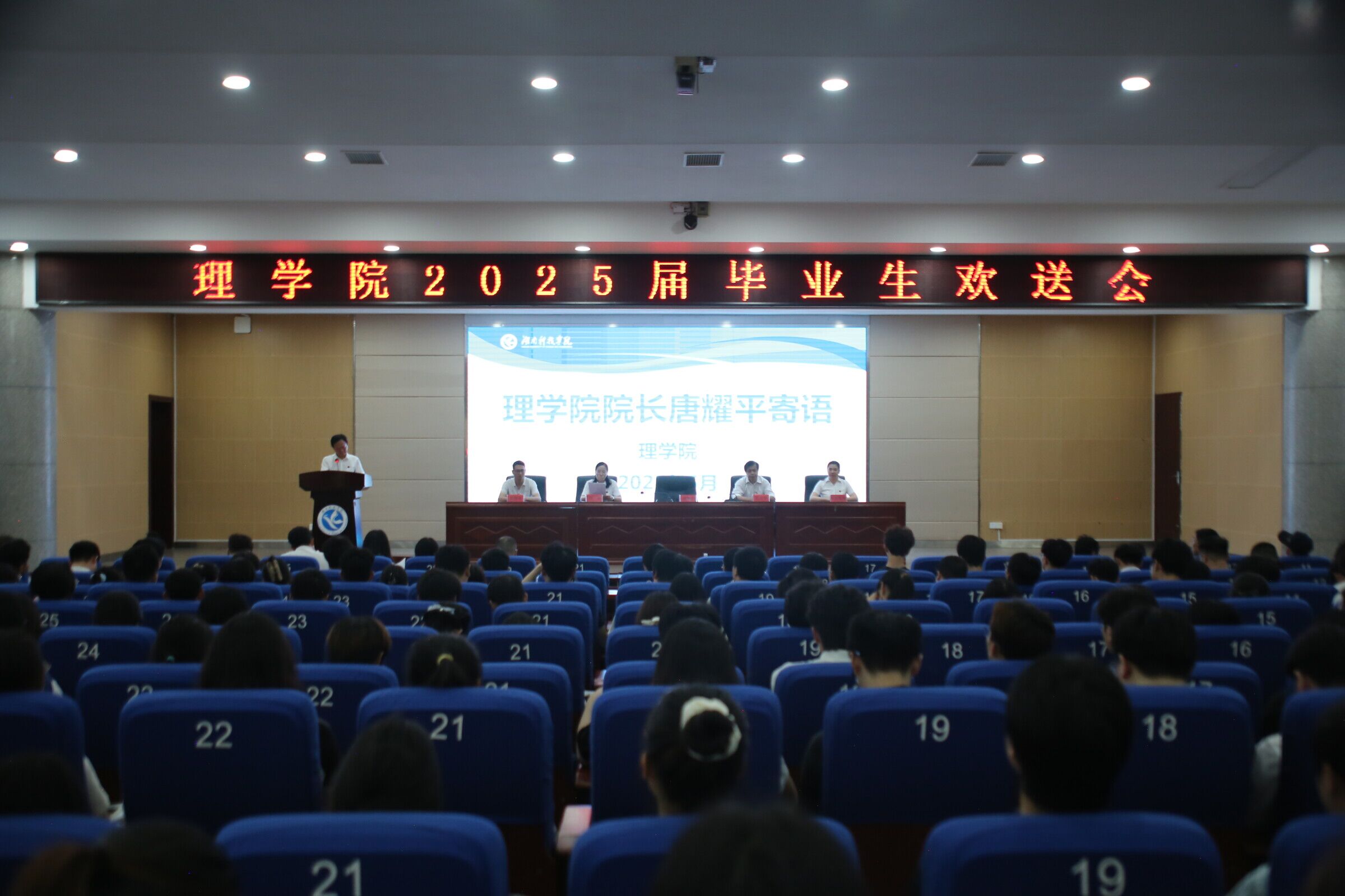 本网讯(通讯员 龙枚樱)5月20日,理学院2025届毕业生欢送会在潇湘大讲堂隆重举行。理学院相关负责人、毕业班辅导员、班主任出席,理学院2025届全体毕业生参加。