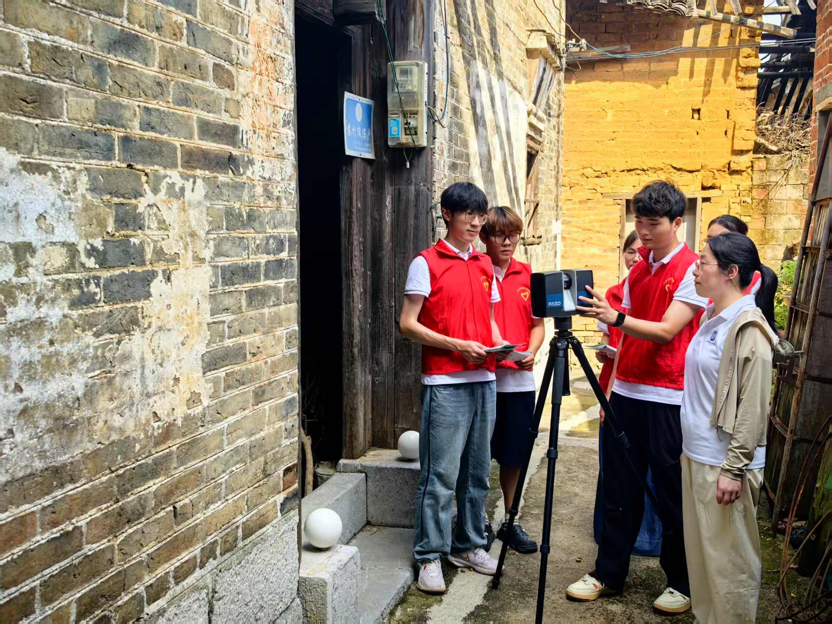 活动还尤其聚焦传统村落保护。在村支两委的协助下,师生们运用专业设备,对村内具有近200年历史的老祠堂及数栋传统民居进行全面测绘,通过三维激光扫描技术和无人机倾斜摄影测量技术,精准记录建筑细节,为后续的数字化保护和修复提供科学依据。通过互动交流,村民们纷纷惊叹科技为古建保护打开的崭新视窗,让大家对家乡的历史文化有了更深刻的认识。