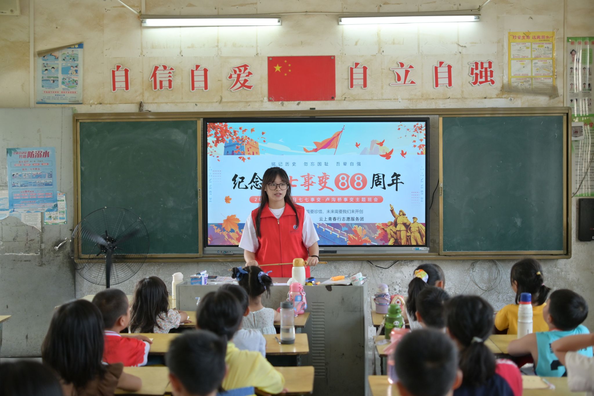 7月7日是“七七事变”纪念日,一堂特殊的历史课让孩子们深受触动。“历史是最好的教科书,我们要从历史中汲取力量,珍惜当下,立志报国。”数应2402班陈玉玲通过精心制作的PPT,详细讲解了日本蓄意发动“七七事变”的历史背景、事件经过及其深远影响。课程中,孩子们分组进行角色扮演,重现历史场景,在沉浸式体验中深刻体会到抗战英雄们的英勇无畏。互动环节,全体同学齐声朗诵“铭记历史 强国有我”的誓言,铿锵有力的声音在教室回荡。