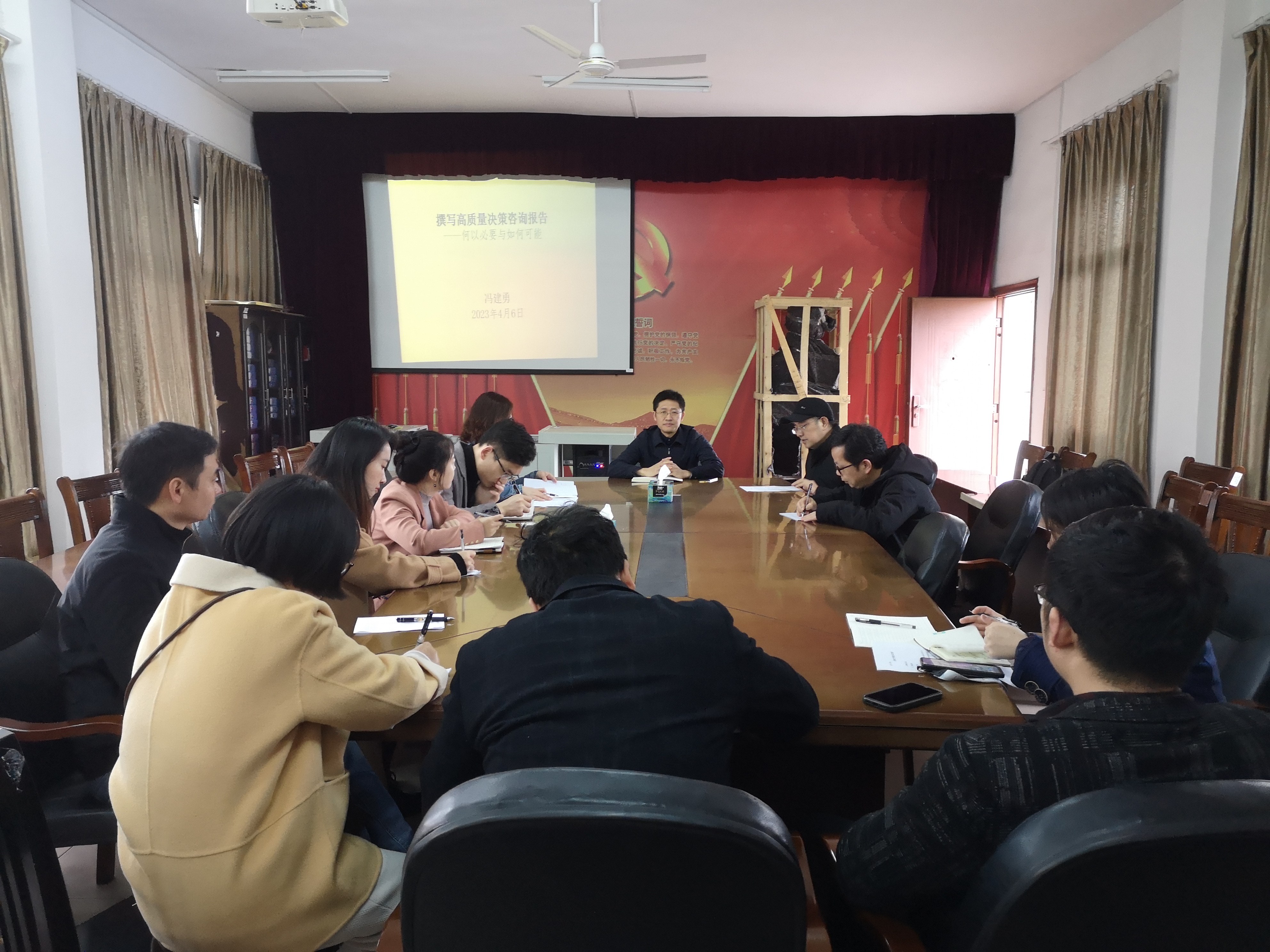 冯建勇教授围绕智库如何赋能地方高质量发展、专报和调研报告的撰写方法、案例分享三方面进行了讲解。他还结合自己的科研工作经验和撰写报告的体会,从“选题、申报、调研、撰写、修改、定稿”等方面与大家进行了深入交流。