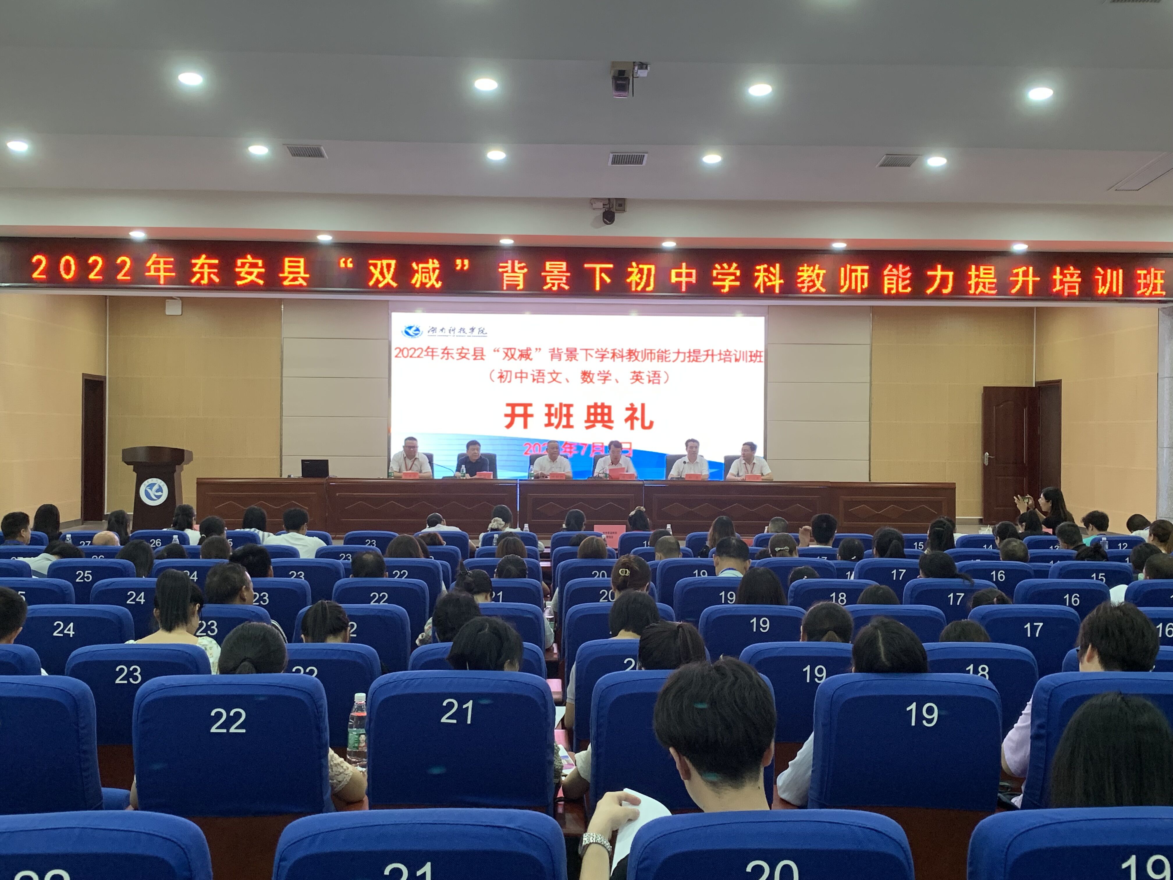 本网讯 7月7日,2022年东安县“双减”背景下初中学科教师能力提升培训班在vwin德赢潇湘大讲堂开班,校党委委员、副校长何福林为培训班授旗。东安经济开发区管委会主任、县教育局党组书记郑剑,东安县教育局教师工作股股长唐宜战,继续教育学院院长唐君,继续教育学院副院长王永春、王志堂及来自东安县各中学的初中语文、英语、数学等171名学科教师出席开班仪式。