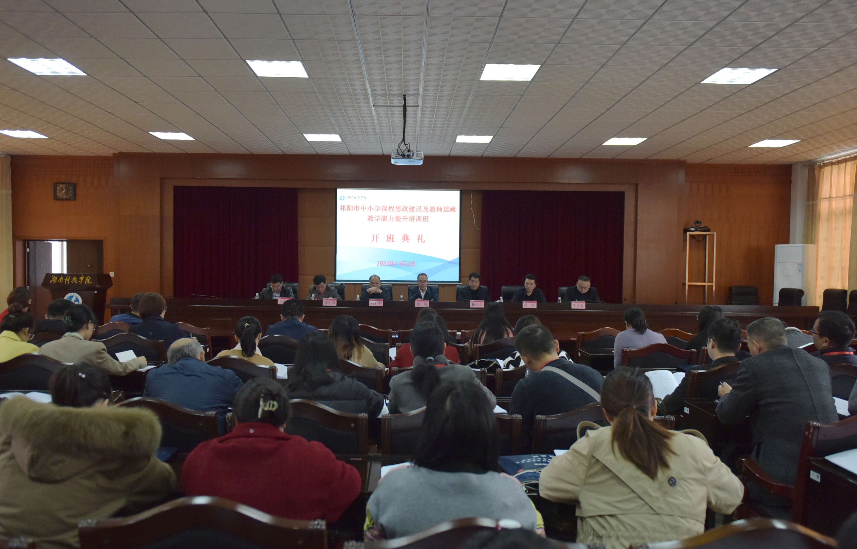 校党委委员、副校长何海,祁阳市教育局教师发展中心主任杨正义、祁阳市教师进修学校校长何新军、继续教育学院学院唐君参加开班仪式,仪式由继续教育学院副院长王志堂主持。
