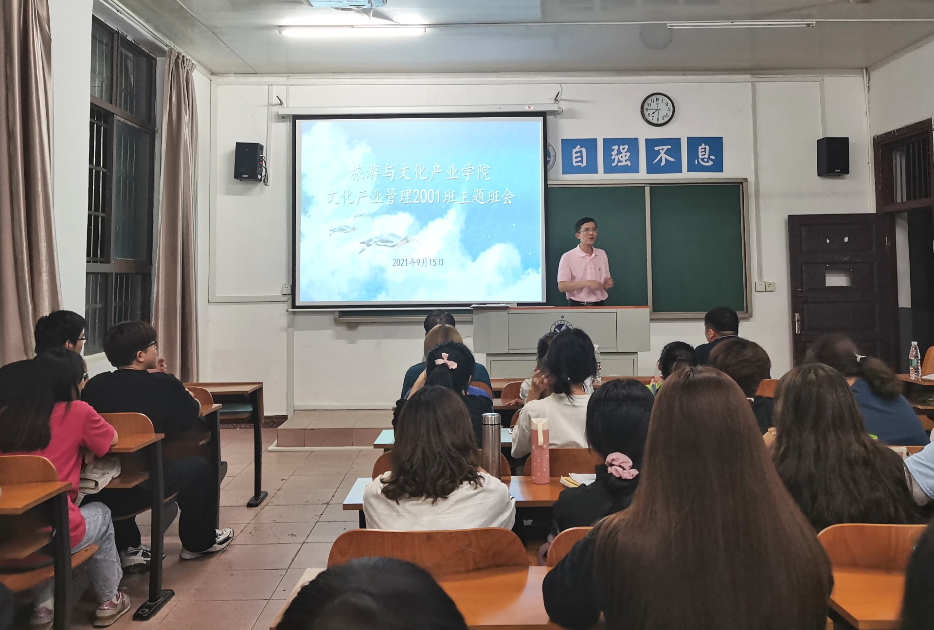 本网讯 9月15日晚,旅游与文化产业学院文化产业管理专业2001班举行主题班会,校党委委员、纪委书记陈灿军以第二班主任的身份参加班会,为大家解疑答惑。