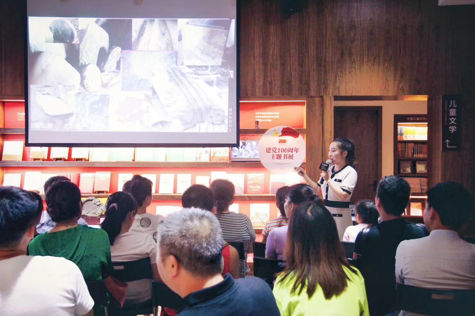 本网讯 近日,vwin德赢ac米兰官方网美术与艺术设计学院视觉传达系邓子戈老师为献礼建党100周年,于长沙德思勤城市广场书店开展社会艺术教育专题讲座,她以《楚中有祁石—湖南永州祁阳石文化赏析》为题,为社会艺术爱好者讲述了国家地理标志祁阳石相关知识,展现了永州的非遗文化无限魅力,大家纷纷表示此次讲座受益匪浅。此次讲座也是该院立足永州、服务地方,推广永州地方文化,响应国家美育“硬指标”,循序渐进做好高校艺术教育普惠大众的第一步。
