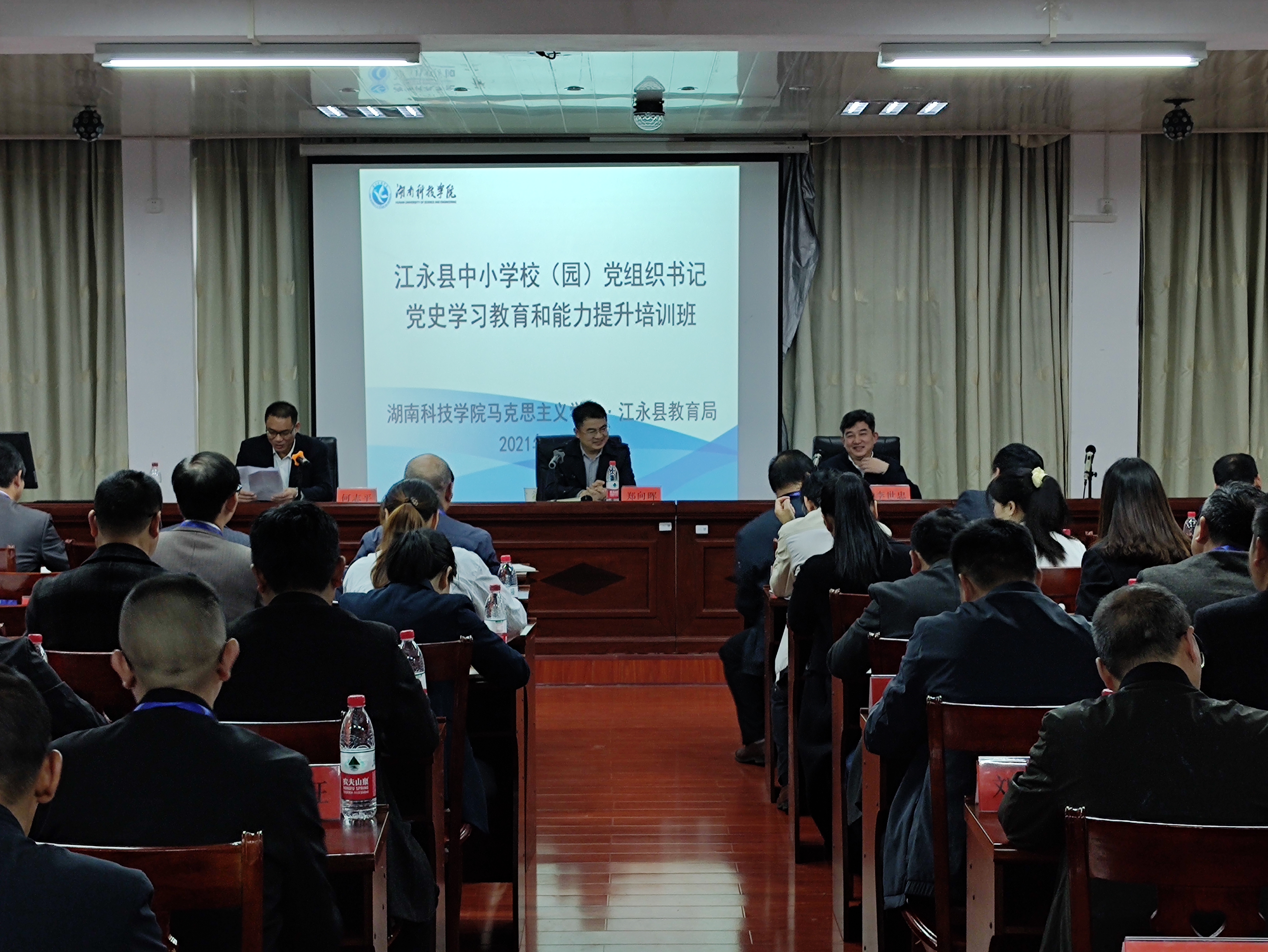 本网讯 4月28日,江永县中小学校(园)党组织书记党史学习教育和能力提升培训班在vwin德赢正式开班。该县教育局党委书记、局长李世忠,vwin德赢马克思主义学院党总支书记郑向晖等参加了开班仪式。