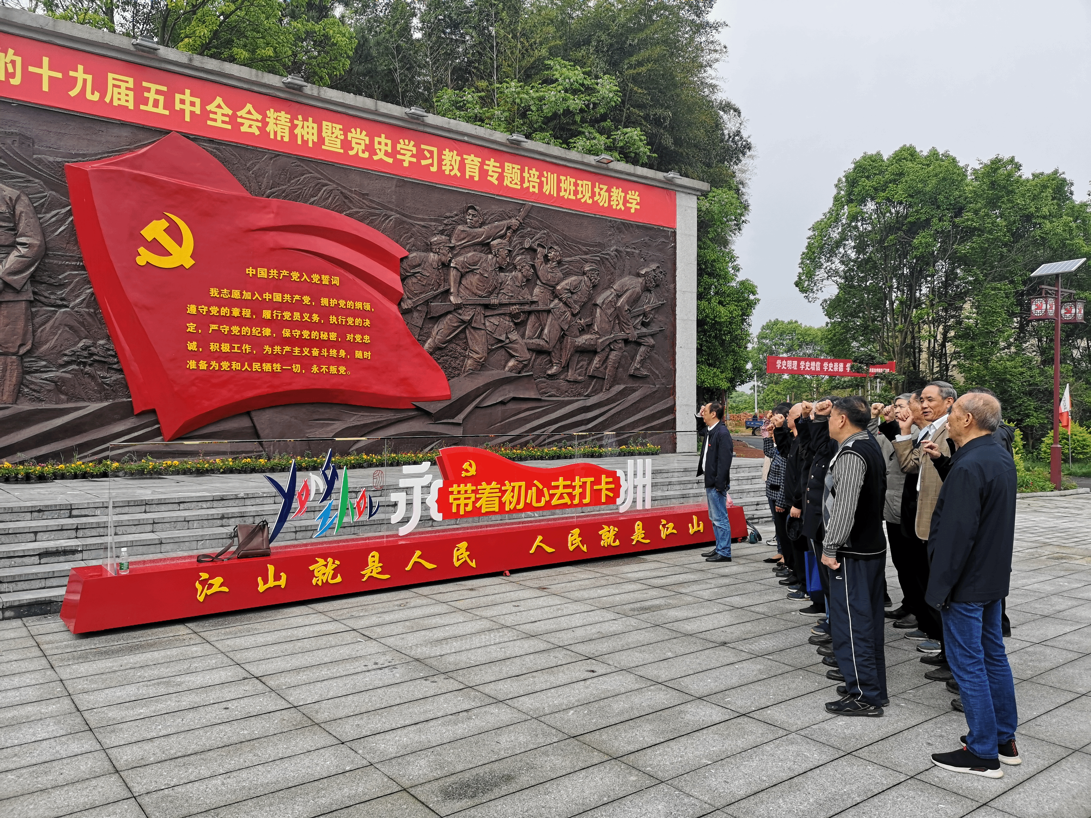 在红星广场前,离退休党总支书记刘剑非领誓,全体人员面向党旗,重温入党誓词。随后大家参观了画眉山红六军团指挥部旧址,在红六军团领导人的雕像前,在一幅幅珍贵的历史图片和实物前,大家追寻红色足迹,重温那段艰苦卓绝的长征历程。