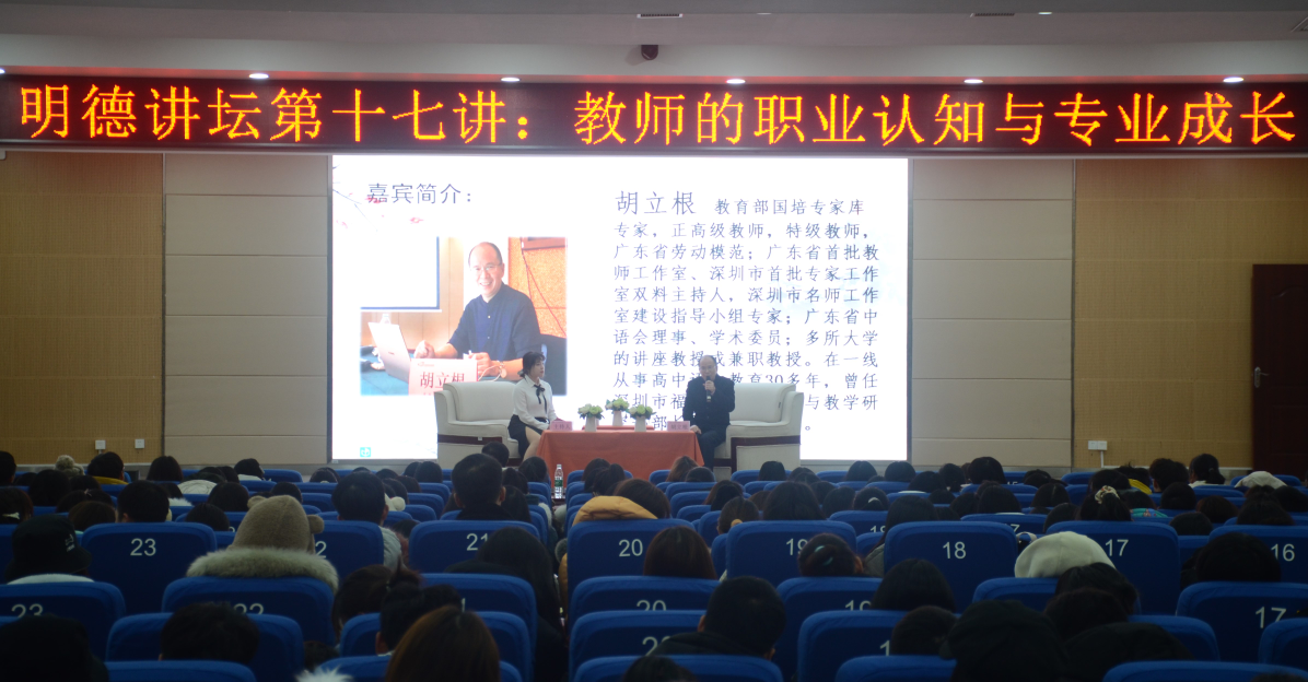 本网讯 近日,人文与社会科学学院在潇湘大讲堂举办了"明德讲坛"第十七讲,特邀知名教育专家胡立根主讲,该院院长潘雁飞及2020级全体学生参加。