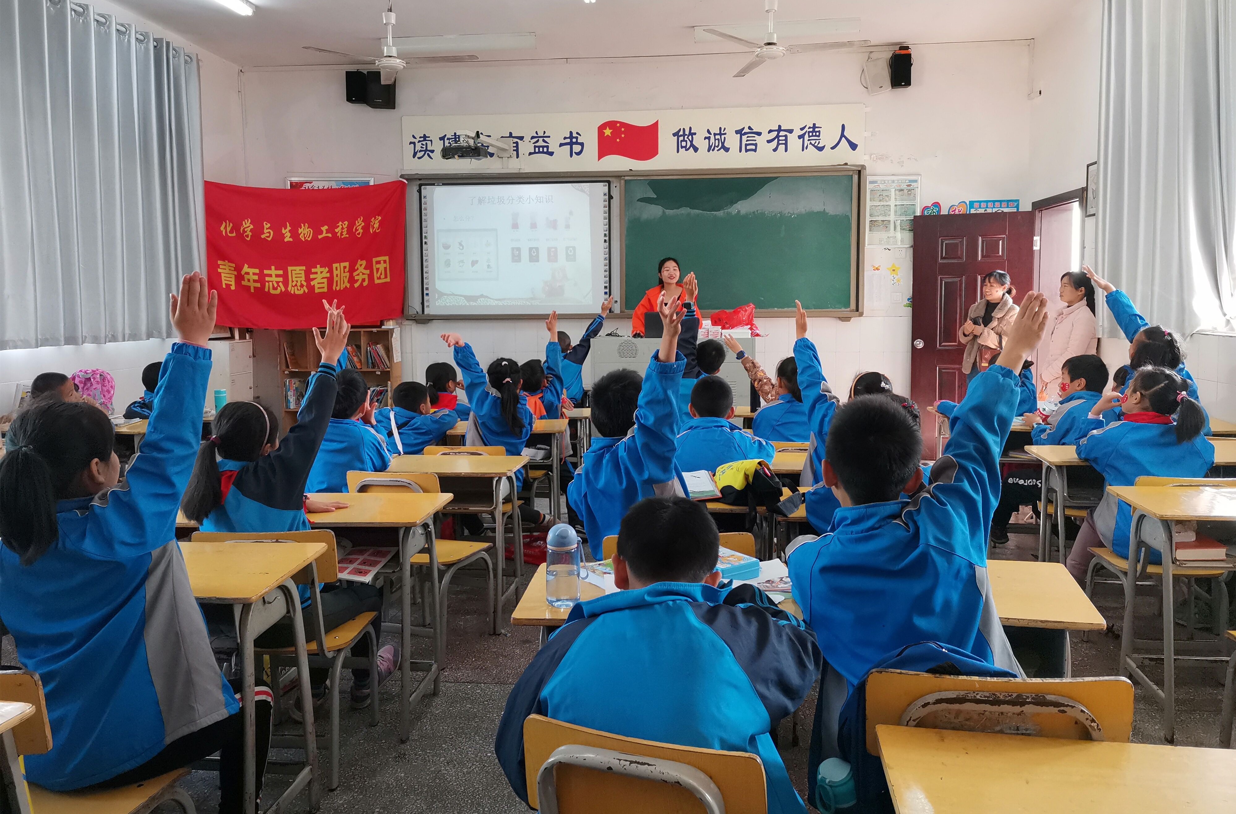 本网讯 11月23日,化学与生物工程学院青年志愿服务团在蘋洲小学组织开展“垃圾分类你我做,美好城市共创造”主题志愿活动。此次活动旨在响应“六城同创”号召,美化市容环境,提高人们环保意识。
