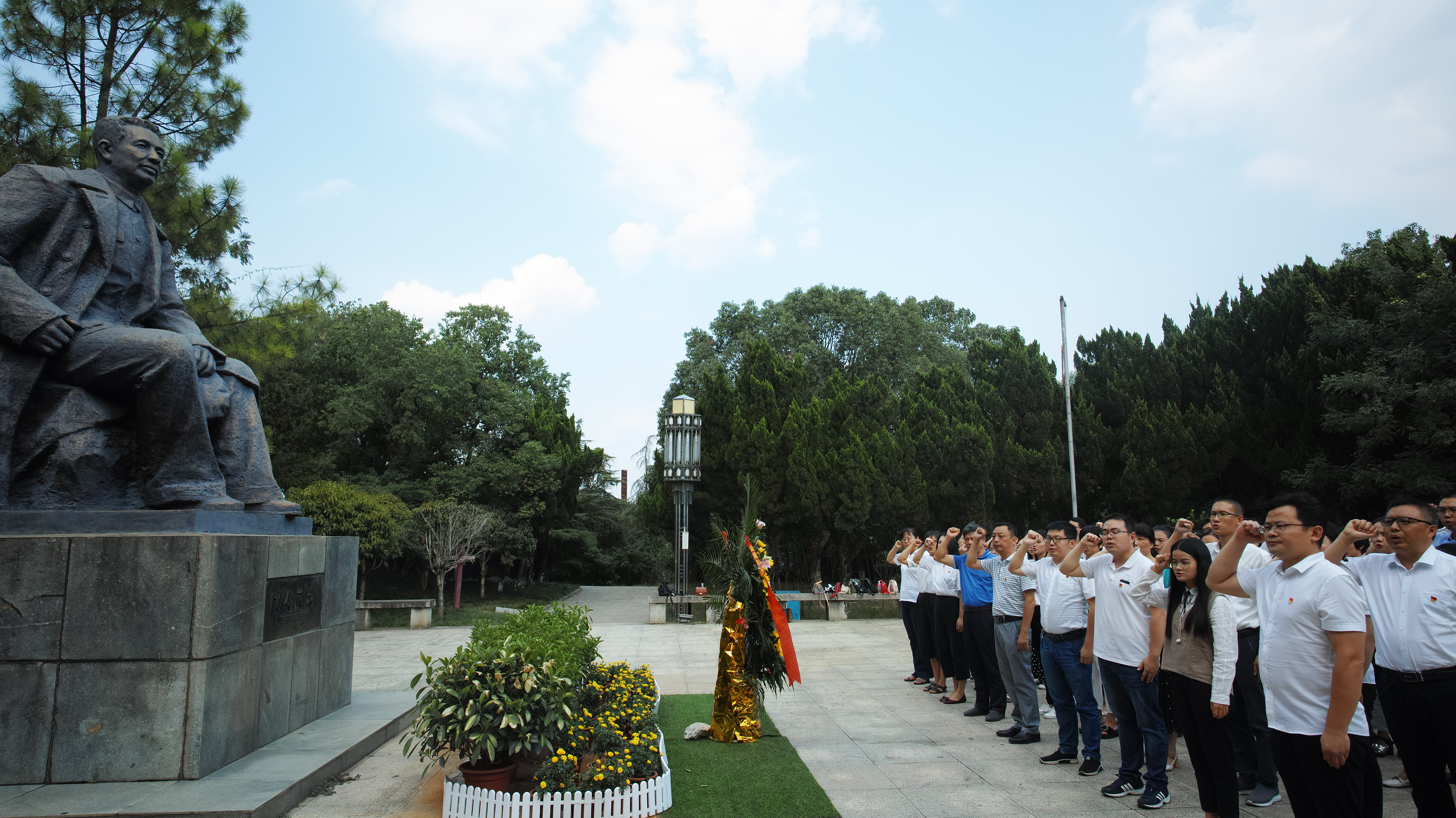 在陶铸同志铜像前,大家队列肃立,向陶铸同志敬献花篮,鞠躬致敬,并重温了入党誓词。随后,大家参观了陶铸纪念馆,详细了解陶铸同志的光辉事迹,深切感受陶铸同志“心底无私天地宽”的共产党人品质及松树般不屈不挠的共产主义风格。