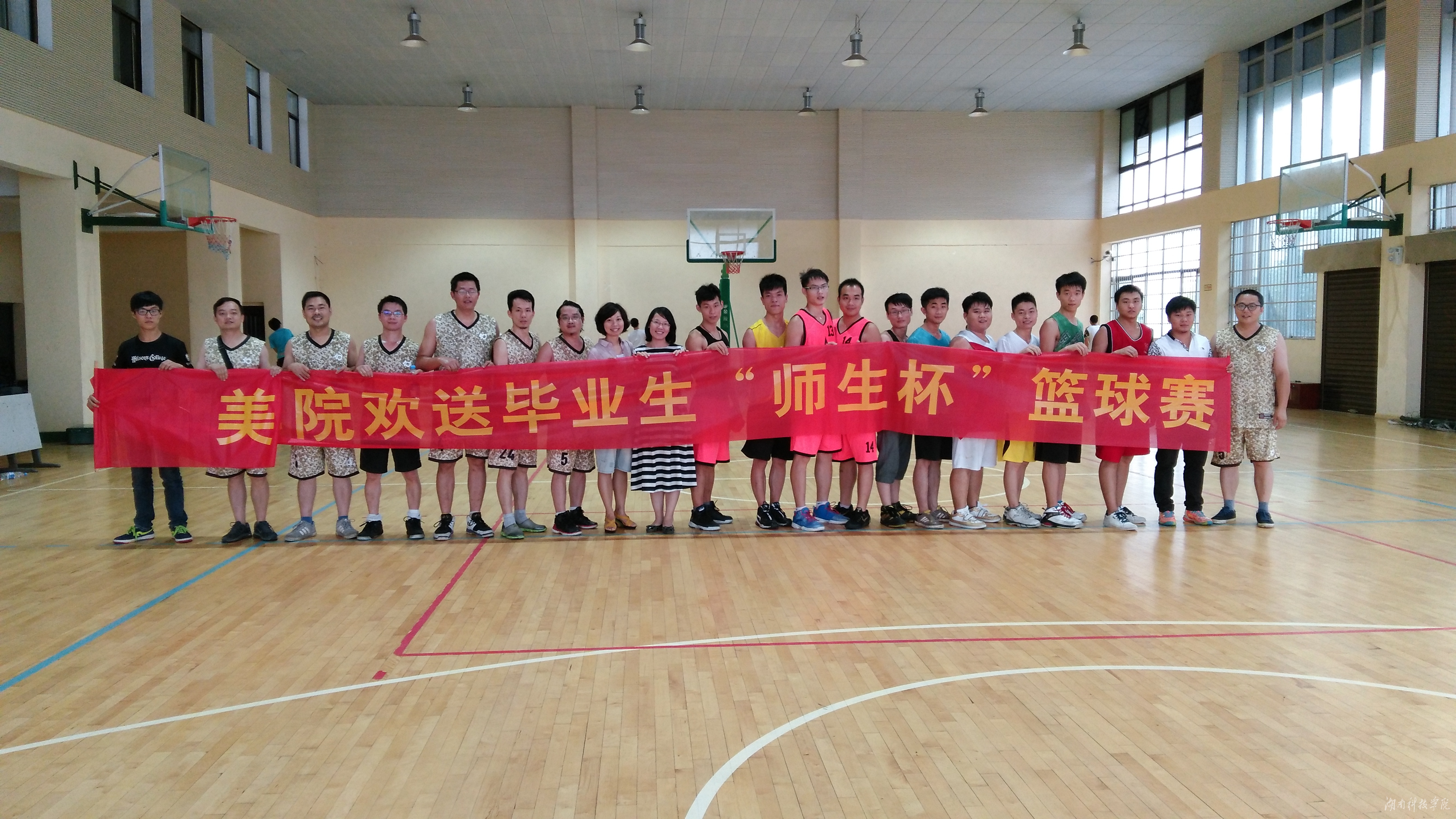本网讯(通讯员 饶赟 摄影 熊雨薇)为鼓励2015届毕业生踏上新征程,6月11日下午,美术与艺术设学院在训练馆举办“师生杯”篮球赛,以球载情欢送毕业生,参赛双方为该院教职工篮球队和2015届毕业生篮球队。