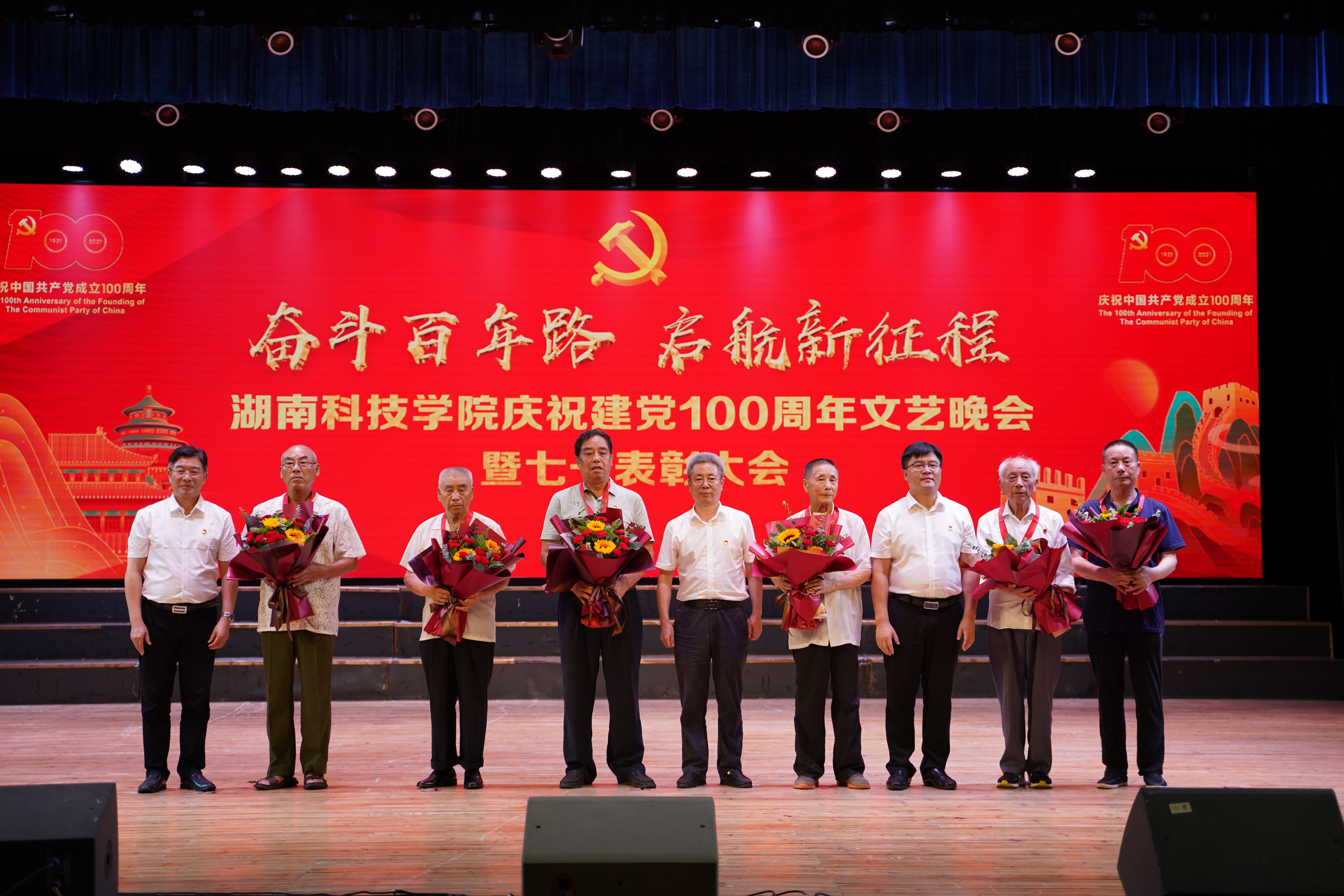 本网讯 在中国共产党百年华诞即将到来之际,6月30日晚,学校隆重举行庆祝建党100周年文艺晚会暨七一表彰大会。大会向“光荣在党50年”的老同志代表颁发纪念章,表彰了一批为学校事业发展作出突出贡献的先进集体和先进个人,激励和鼓舞广大师生党员不忘初心、牢记使命,砥砺前进、奋发有为。