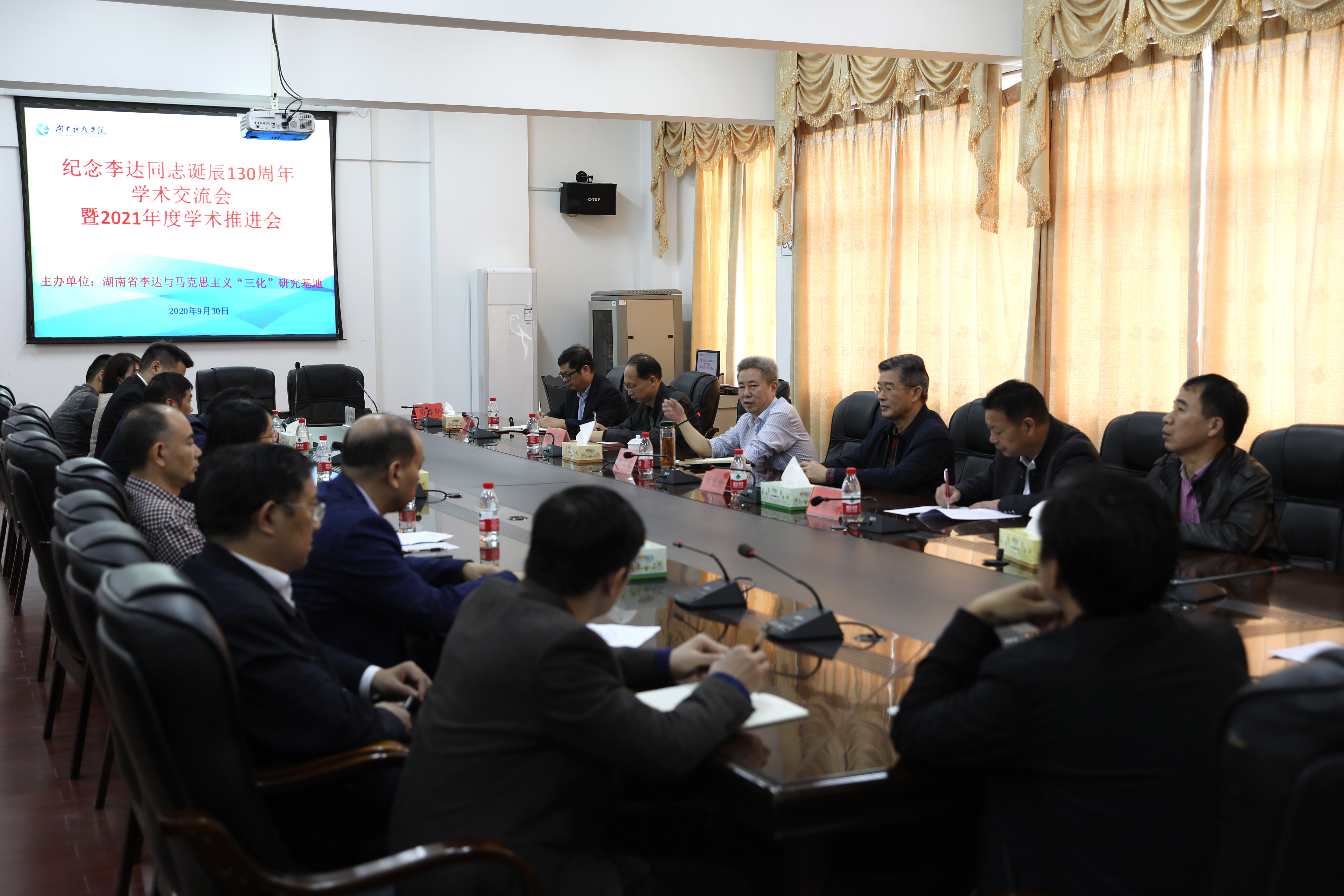 党委书记曾宝成,副校长宋宏福,李达故居管理处负责人,科技处处长杨金砖,马克思主义学院党总支书记郑向晖,湖南省李达与马克思主义“三化”研究基地首席专家柏春林及成员参会。会议由马克思主义学院院长廖雅琴主持。