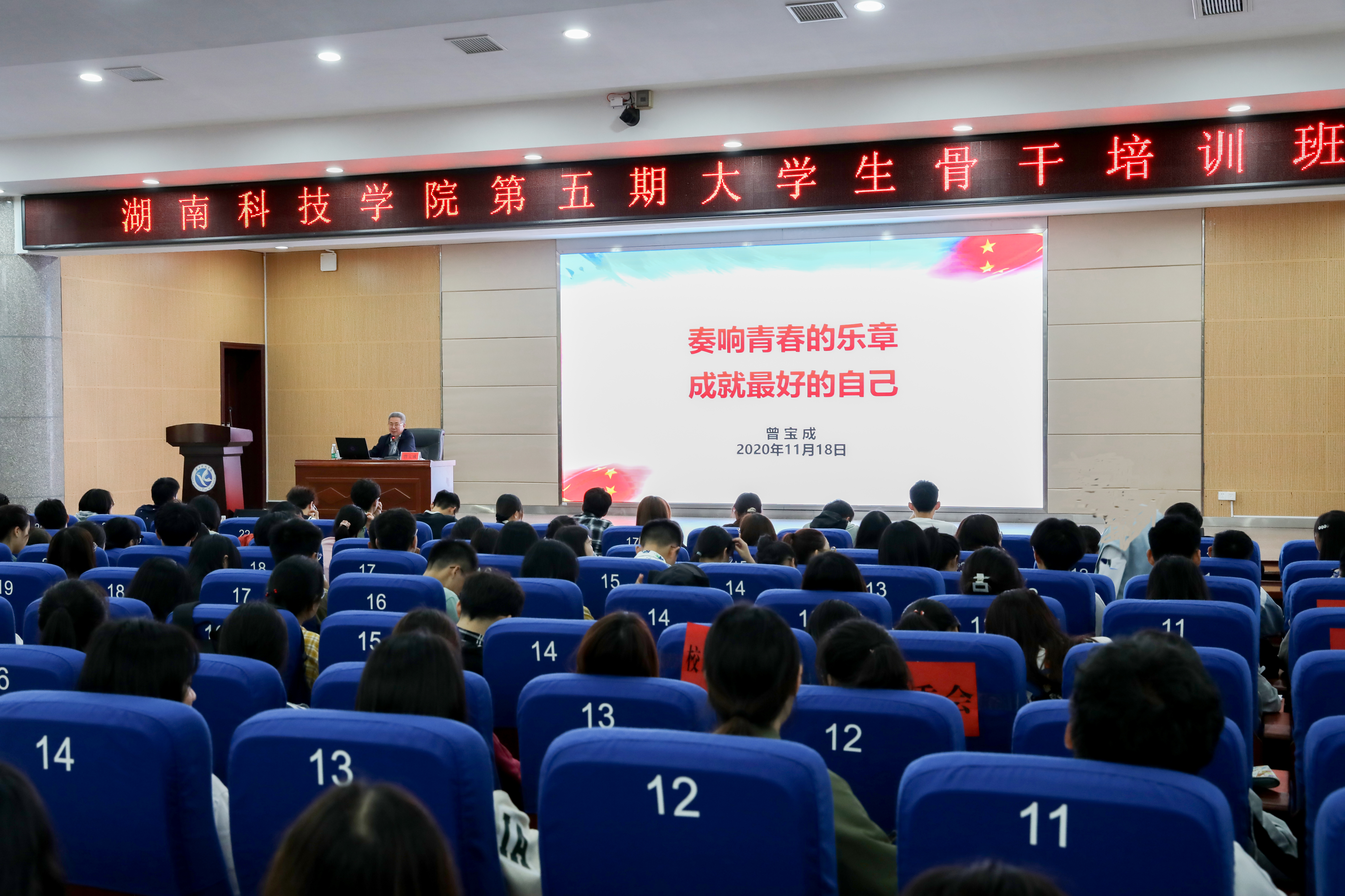 本网讯(记者 樊宇坤 实习记者 陈丽杰 黄宇莹)“你们是勇敢的一代,是幸运的一代,是迎接挑战的一代,更是担当时代重任的一代。”11月18日晚,在第五期大学生骨干培训班上,党委书记曾宝成围绕“奏响青春的乐章,成就最好的自己”这一主题,在潇湘大讲堂与800余名学生骨干共话青春梦想。