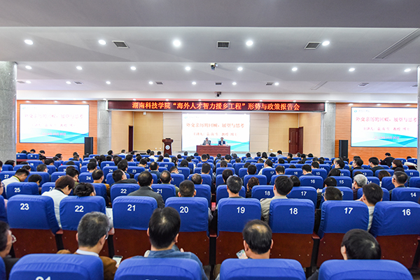 本网讯 10月30日上午,学校召开“海外人才智力援乡工程”形势与政策报告会,特邀外交学院原党委书记、常务副院长袁南生教授来校作报告。永州市人大常委会副主任、党组成员李农妹,市侨联党组书记、副主席柏继平,美洲湖南永州同乡会会长聂社春,美洲湖南永州同乡会副会长、墨西哥湖南总商会副会长陈和喜,中铁五局贵州公司总经理邹少龙,(香港)深圳汇聚天下投资控股有限公司董事戴亚林,校长曾宝成及在校领导,学校师生代表800余人参加报告会。报告会由校党委书记陈弘主持。