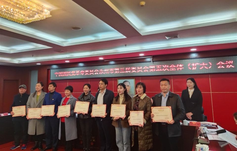本网讯 3月21日上午,民革永州市第三届委员会第五次全体(扩大)会议在冷水滩召开,会议表彰了先进。民革vwin德赢ac米兰官方网支部荣获先进支部,这也是民革永州市委2013年开展争先创优以来民革校支部第五次荣获先进支部。陈义勇荣获优秀党员,方芳荣获优秀党务工作者,民革校支部提交的调研报告获2020年度永州市政协好调研二等奖。