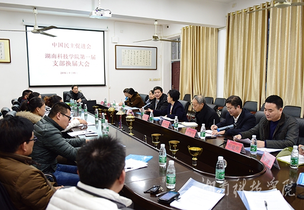 1月15日下午,民进vwin德赢ac米兰官方网支部在明德楼二楼会议室召开第二届委员会选举大会。第一阶段会议、第二阶段会议分别由民进永州市委专职副主委桂金玉、副主委胡建辉主持。会议选举何林金、唐晓林、于皓为支部委员会委员。市政协副主席、民进市委主委周秀英,永州市委统战部副部长邓晓明,校党委副书记唐艳明出席会议并讲话。