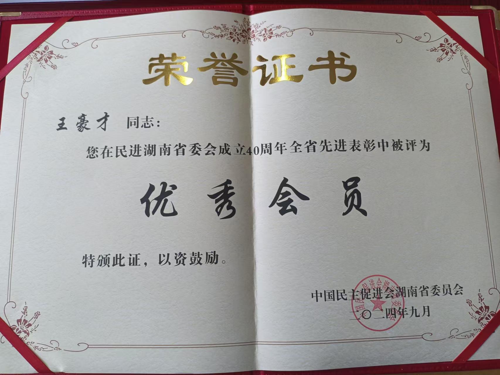 本网讯(通讯员 李焕品)9月4日,在长沙召开的民进湖南省委会成立40周年庆祝大会上,vwin德赢教师、民进会员王豪才荣获表彰,被评为“优秀会员”。全国人大常委会副委员长、民进中央主席蔡达峰出席庆祝大会,并向获奖者代表颁奖。