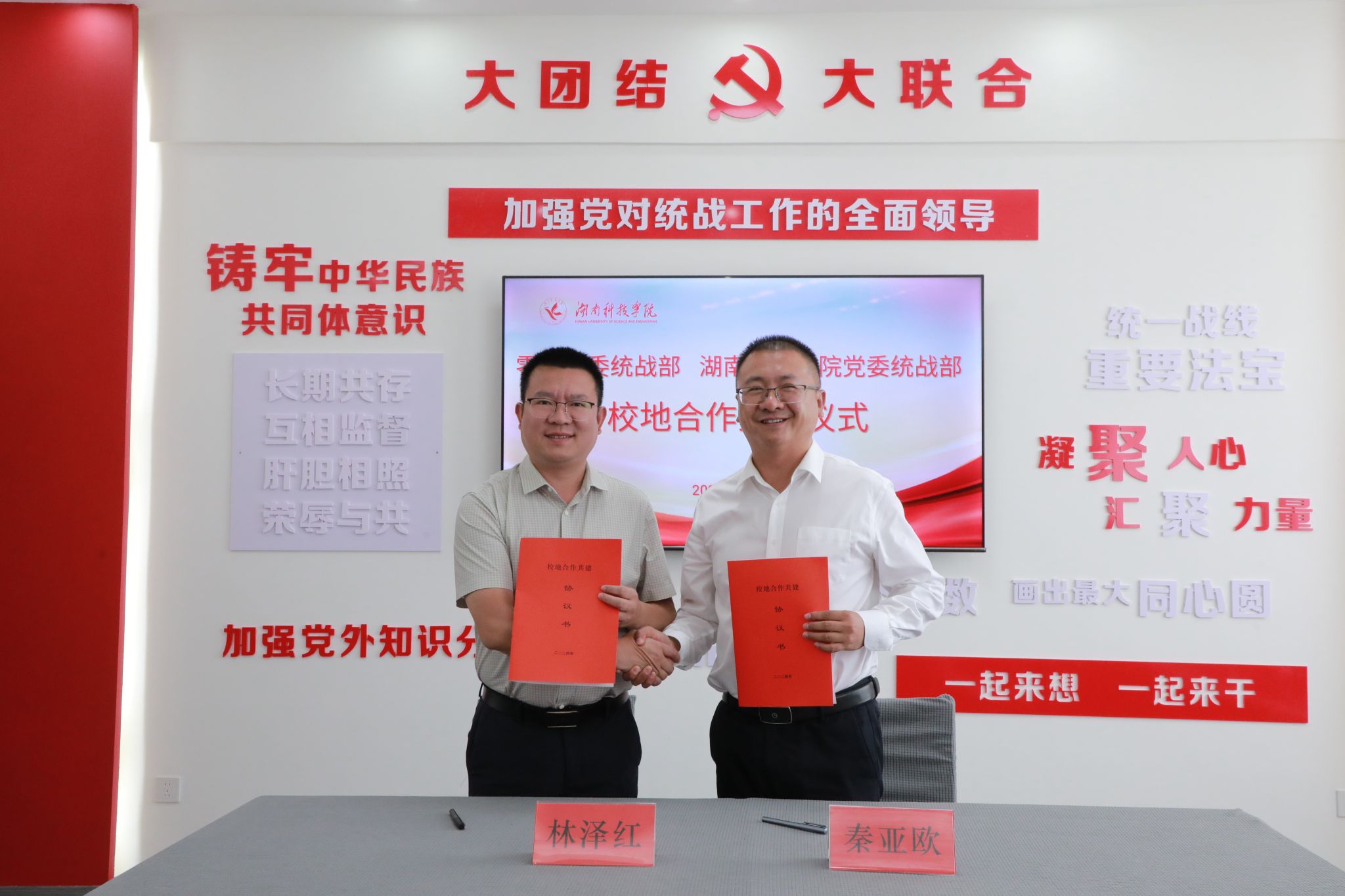 本网讯(通讯员 唐珊珊)10月9日,党委统战部与零陵区委统战部签署校地合作共建协议,零陵区委统战部常务副部长秦亚欧、学校宣传统战部常务副部长林泽红等出席活动。