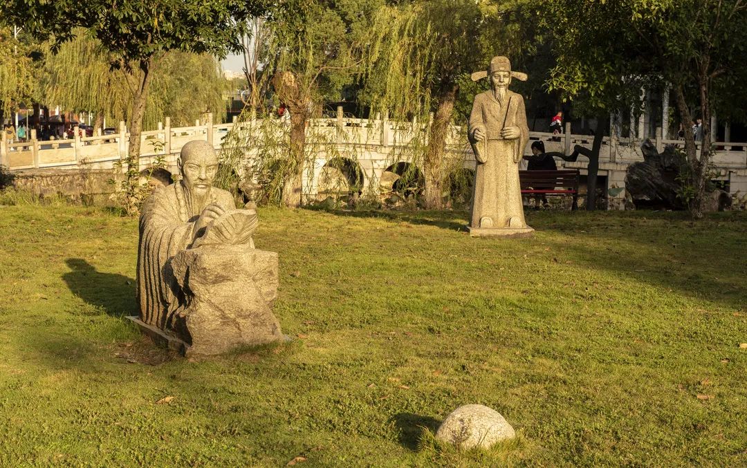 爱莲湖的莲花一年一年开落,应是深刻体会了“年年岁岁花相似,岁岁年年人不同”吧。湖的名字取材于周敦颐《爱莲说》。周敦颐,人称濂溪先生,祖籍永州道县,这位宋明理学的开山鼻祖,以他光华璀璨的思想让儒道释三教合流而自成一派。“吾道南来原是濂溪一脉,大江东去无非湘水余波。”后来的人们用这句诗来形容他影响东亚五国至为深远的哲学成就。