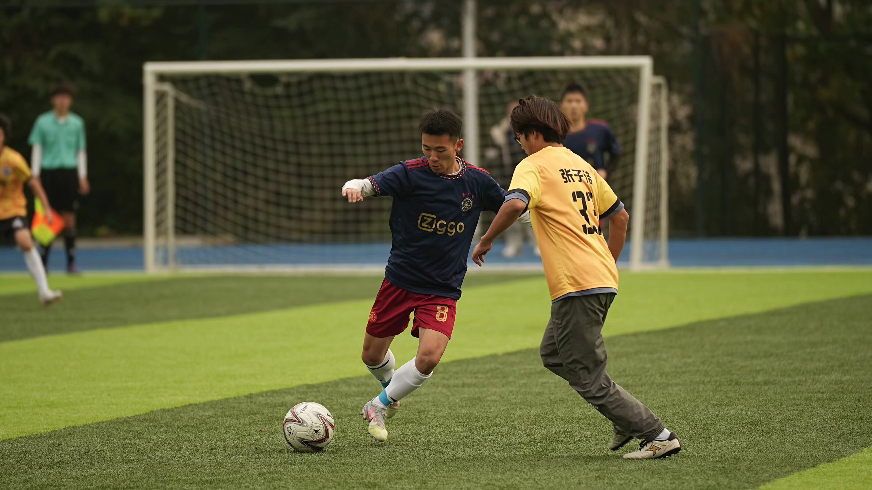 比赛场上,我院党总支书记何永红、党总支副书记任学兵亲临现场,为运动员们加油助威,队员们在比赛中配合默契,战术执行到位。上半场时,他们凭借精妙的传球和犀利的突破,率先打破僵局,取得领先优势。下半场,尽管对手发起猛烈反攻,但我院的防守队员们表现顽强,一次次成功化解危机。关键时刻,主力前锋抓住机会,再进一球,锁定胜局,最终以4:0的比分赢得了比赛。