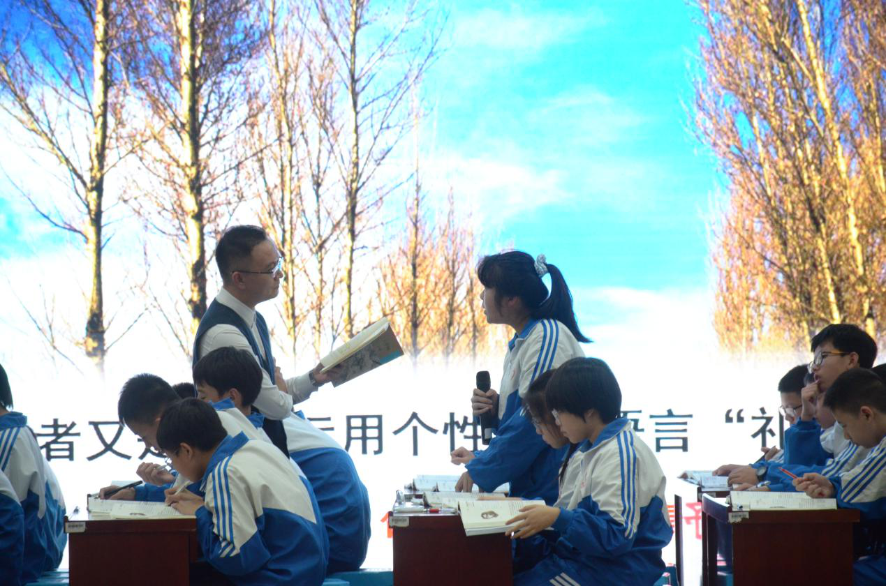 本次活动共有三个阶段。第一阶段,陈铿教授《白杨礼赞》教学示范课。本堂示范课贯彻陈教师的“四动”与课堂的“四实”,是一节有思想灵魂的语文课,师生之间尊重、坦诚、碰撞、争论、对话,知识的光辉淋漓尽致地散发。话不在多,点到为止;声不在大,自有其旨。课堂形式丰富,大大提高了学生的课堂积极性。
