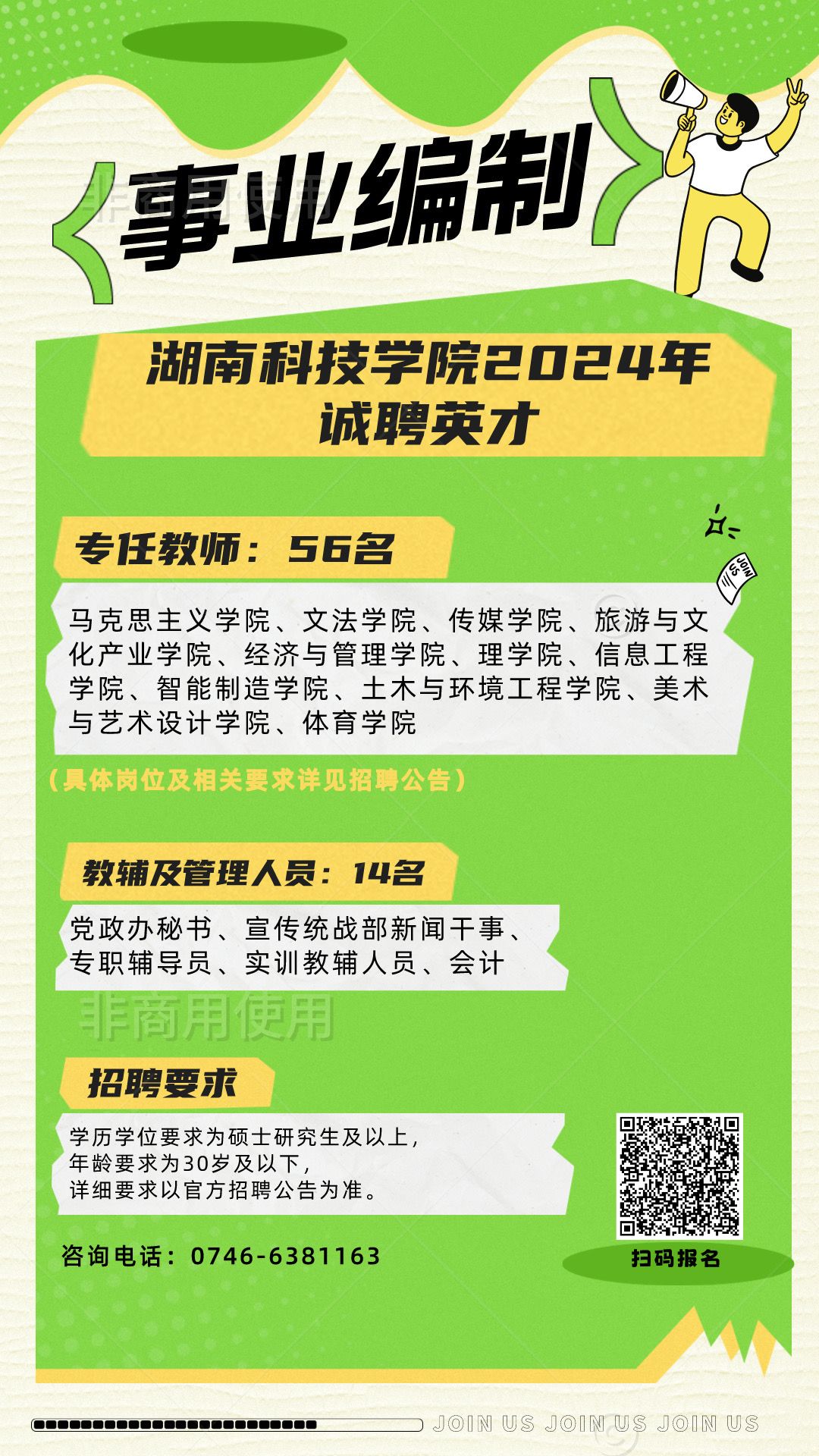 咨询电话:0746-6381163(校人事处)