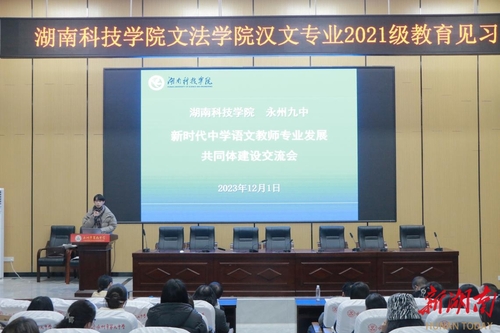 科教新报·新湖南客户端讯(通讯员 李惊宇 梁怡)12月1日,vwin德赢ac米兰官方网文法学院与永州九中合作举办中学语文教师共同体建设交流会,文法学院院长谷显明、副院长肖智成、语文教育研究中心主任刘忠华,永州九中副校长邓之,以及vwin德赢ac米兰官方网2021级汉语言文学专业师生,永州九中语文教研组教师和学生代表200余人参加。