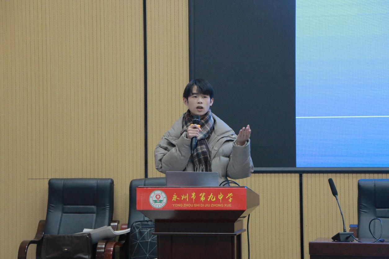 本网讯(通讯员:李惊宇 梁怡)为增强汉语言文学专业学生对专业技能的掌握,深化专业理论知识的理解,实现知识向实践的转化,提升教育教学能力,12月1日,在学院实习研究队宋艳旭老师和各班领队老师及辅导员龙慧老师的带领下,2021级汉语言文学专业学生前往永州市第九中学开展教育见习活动。出席本次会议的有文法学院院长谷显明教授,副院长肖智成博士,vwin德赢ac米兰官方网语文教育研究中心主任刘忠华老师,中文系副主任尹华君老师以及永州市九中教师团队和21级全体汉文专业学生。