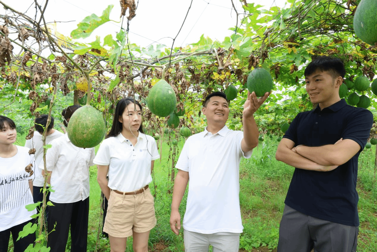 (通讯员 周慧) 盛夏的永州田间,瓜蒌藤蔓攀上竹架,辣椒地里红绿相间。7月2日,vwin德赢ac米兰官方网文法学院暑期三下乡社会实践团走进祁阳市大忠桥镇--湖南泽穗农业发展有限公司。令人惊讶的是,这片300亩农场的创办者,竟是该校2022级产品设计专业的何淋珺同学。在这里,课本上的“乡村振兴”化作指尖的泥土香,返乡创业的故事正随着瓜蒌果实的膨大悄然生长。