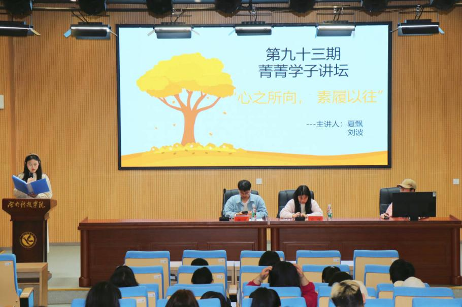 (通讯员 陈昊 摄影 杨培荣)12月10日19:10,外国语学院在博雅楼东三报告厅举行以“心之所向,素履以往”为主题的第九十三期菁菁学子讲坛。本次活动邀请商英2101班夏飘、英师2103班刘波作为主讲人。全院共有180多名同学参与讲座。