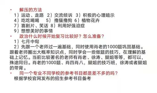 A:我认为考研最重要的是要制定好一个符合自己能力水平的目标,同时不给自己留任何退路,全力以赴。要相信“也许你的翅膀是隐形的,但你飞过的时候,我们都看到了。”