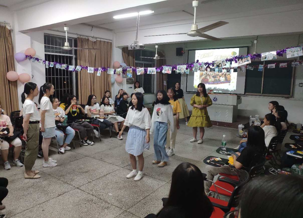 与此同时,各班级在本次活动中都加入了极具本班特色的小游戏。如:日语1902班的“你画我猜”游戏让活动达到了高潮,每位同学都积极参与,在游戏的同时增加了默契,整个场地充满了欢声笑语;商务英语1902班的“甜心”游戏,让同学们把糖送给他们想送的人,并说出他所欣赏他的一个品质或理由,让同学们学会欣赏他人的优点和特长,学会表达自己的情感。此外“贴墙”游戏也让每位同学都欢跃起来,英语师范1902班副班和朋辈也参与到了游戏中,增加了同学们之间的亲密度,其乐融融。活动当天恰好有同学过生日,全班同学合唱生日歌,纷纷送上生日祝福,场面十分温馨,刚进大学便和全班同学一起过生日,相信这一定是最难忘的生日。