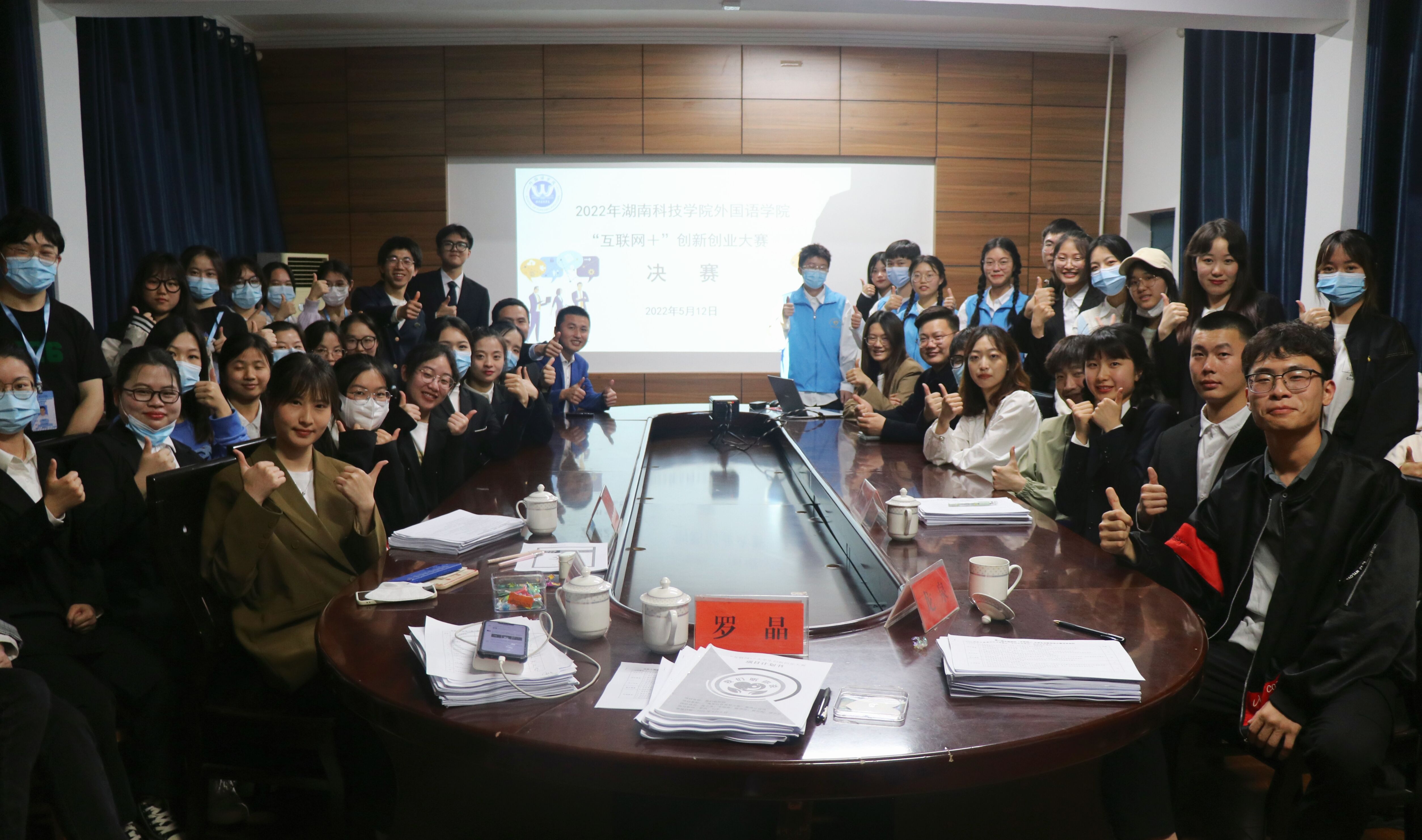 (通讯员 李倩 摄影 袁晶)为进一步推动我院创新创业工作,激发大学生创新创业热情,培养创新创业型人才,5月12日晚7:30,外国语学院在博雅楼202会议室成功举办了 “互联网+”创新创业选拔赛。外国语学院党总支副书记罗晶,学工办副主任刘罗、唐鹤轩,学校招生就业处处长、创新创业指导办主任龙泉以及创新创业指导办周忠夏莅临本次比赛并担任评委。