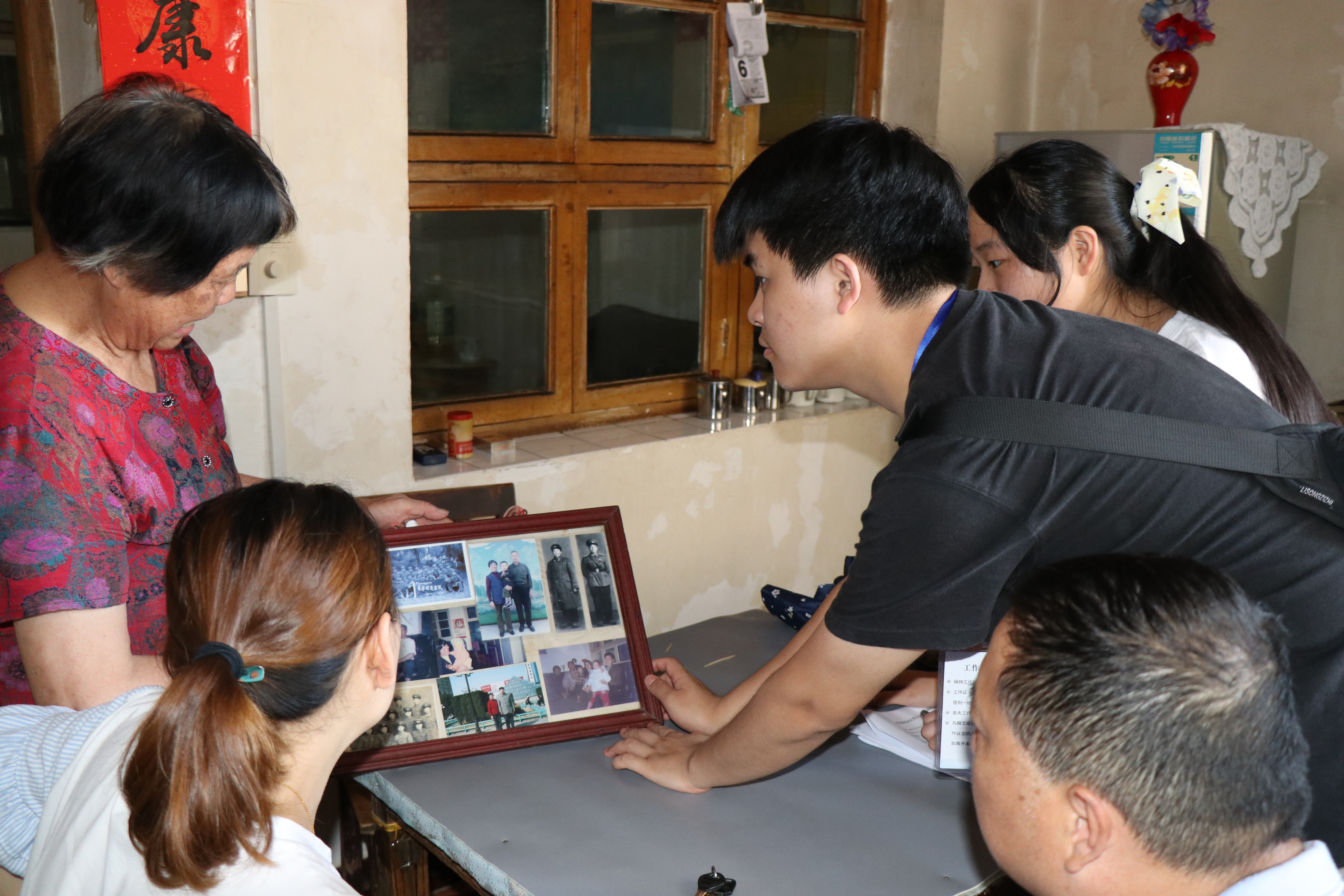 “你看,这个是我们刚入党时拍的照片。”陈奶奶指着相框里的照片,为志愿者们讲述了她与老伴陈爷爷一起为革命事业奋斗的经历。陈爷爷是一名飞行员,陈奶奶是一名游击女战士,她希望同学们要努力学习,珍惜现在来之不易的幸福生活。