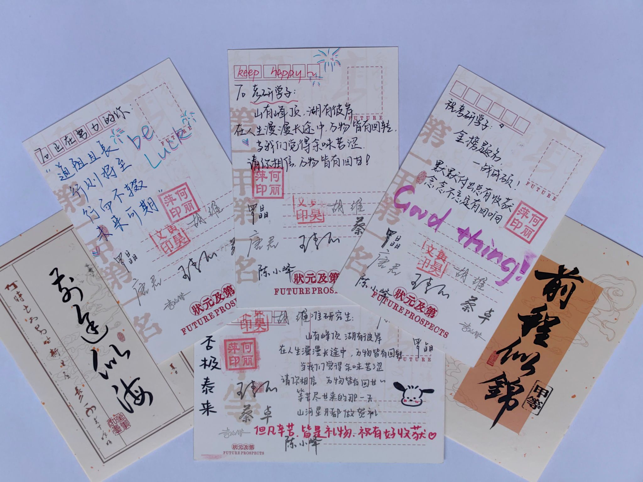 最后,院领导们依次为考研学子送上精心准备的“考研加油福袋”。这些福袋不仅包含着各类实用物品,还有为考研学子特别定制的好运书签,老师们亲笔写下祝福语,为考研学子们加油打气,凝聚着学院对学子们的深切关怀与殷切期望。
