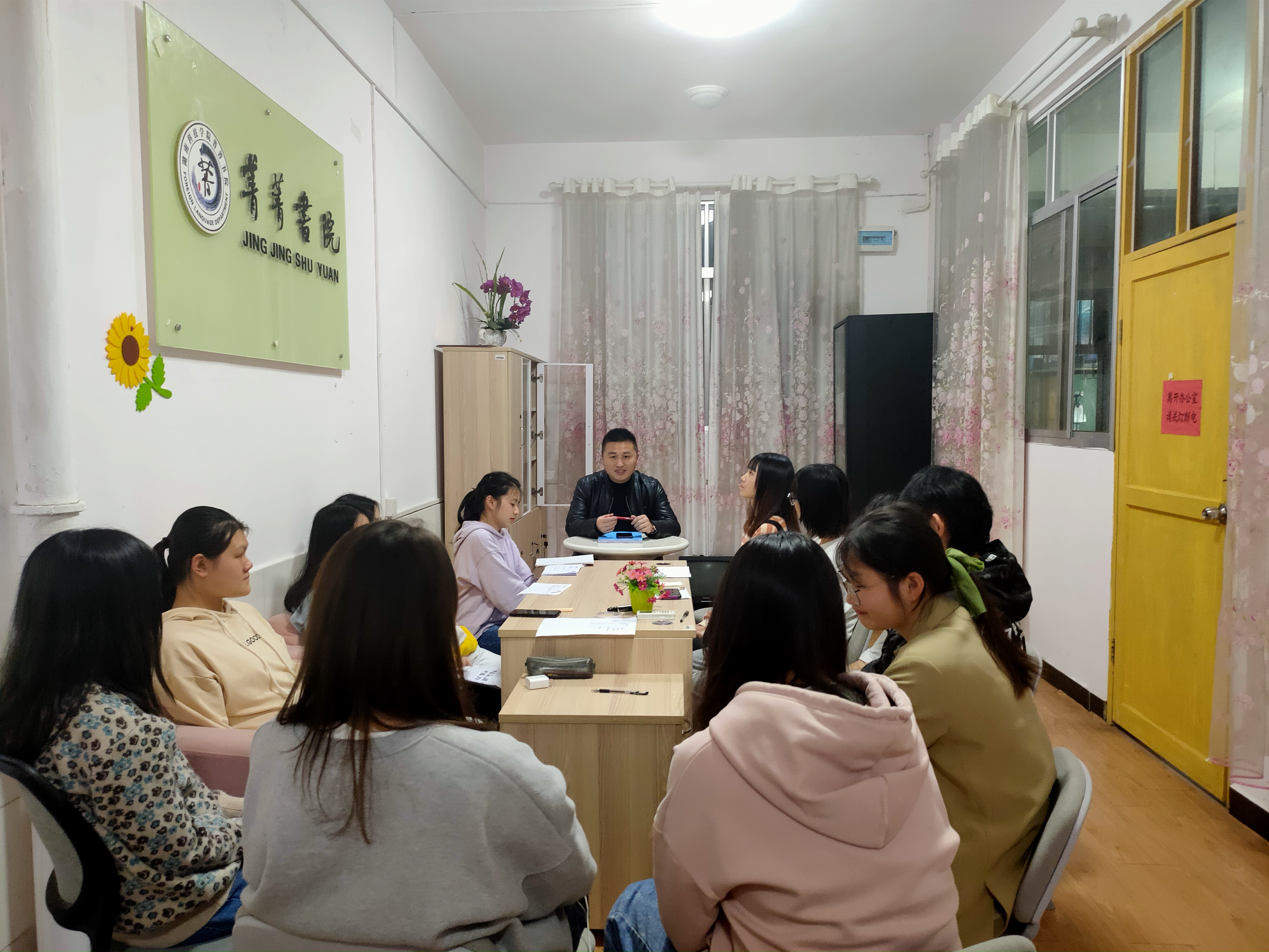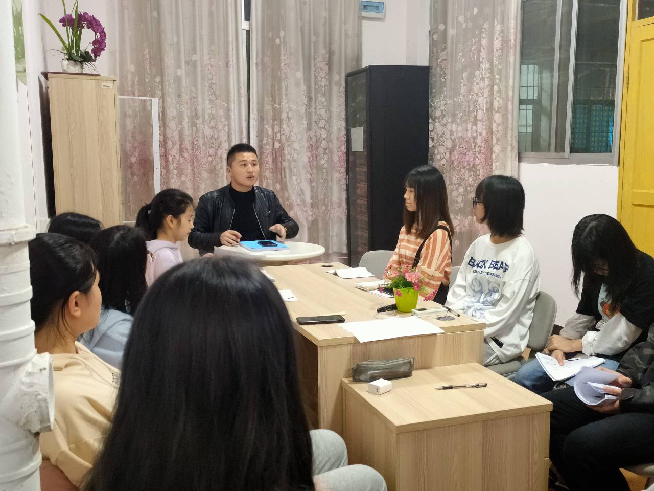 本网讯(通讯员 谭俊杰、何颖慧;摄影 吴梦瑶)为了促进我院心理健康教育工作,加强朋辈辅导员之间的交流,解答朋辈辅导员们在平时工作中遇到的困惑,2021年4月20日晚9点10分,外国语学院心理健康部在菁菁书院召开了本学期第二次朋辈辅导员交流会。本次会议由心理专干刘罗主持。