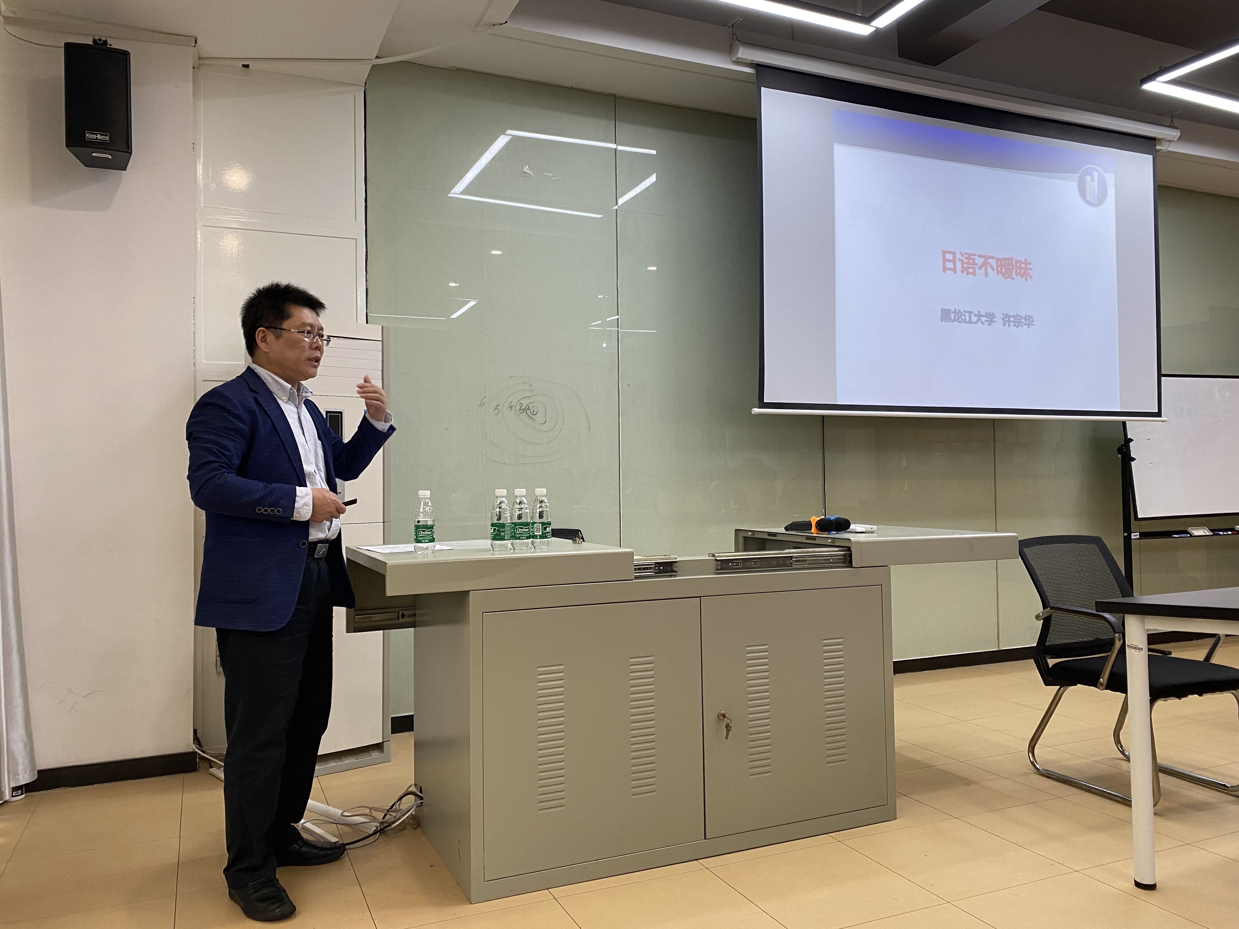 在讲座开始之前,我院院长欧华恩对许宗华教授做了简单的介绍并宣布本次讲座正式开始。讲座中,许教授将“暧昧”一词在汉语与日语当中的释义进行阐释,列举出一些认为日语暧昧的观点,如:语音上有吞音现象、句末决定论、意思表达之暧昧与含蓄、修辞上的意识流、存在大量多义词语等观点。其后又一一对其反驳。如吞音现象和句末决定在汉语、英语中也有类似的现象等理由,另外又提出了日语法律文本是日语不暧昧的力证、暧昧的语言无法实现真正意义上的言语交际以及具有普遍性的语言模糊性不等于日语的暧昧性。不仅如此,许教授还提出从语言表达与客观事态的关系来看,日语不仅不暧昧,甚至在某些方面具有较强的科学性和客观性。